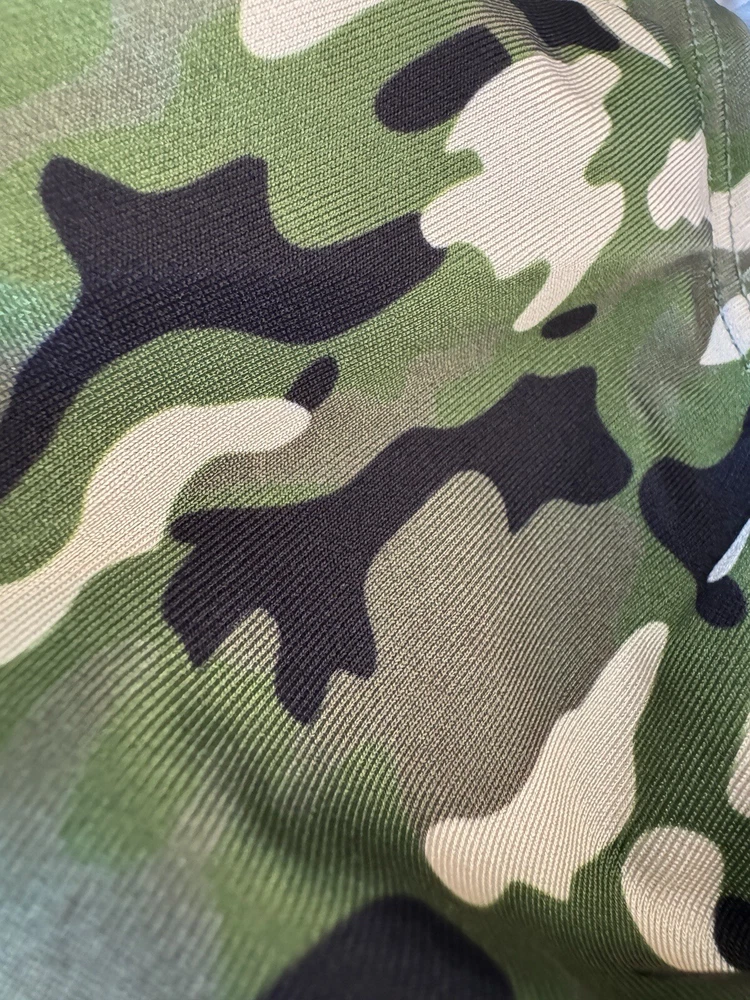 Elevate your swimwear game with these comfortable and stylish men's briefs. Perfect for a day at the beach or lounging by the pool, these swim trunks are made from a durable blend of polyester and spandex, ensuring a comfortable fit that will last all summer long. Featuring a trendy army print and a classic swim briefs style, these trunks are sure to become a staple in your swimwear collection. Designed with a regular fit and available in size M, these trunks are suitable for men of all shapes and sizes. Whether you're looking to make a statement or simply want to enjoy the water in style, these Trunks brand swim trunks are the perfect choice. So why wait? Add them to your cart today and experience the ultimate in comfortable and fashionable swimwear.