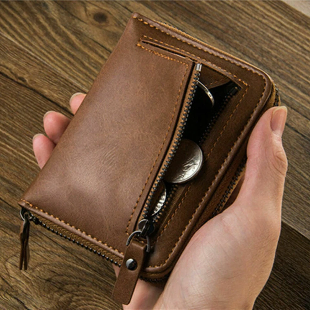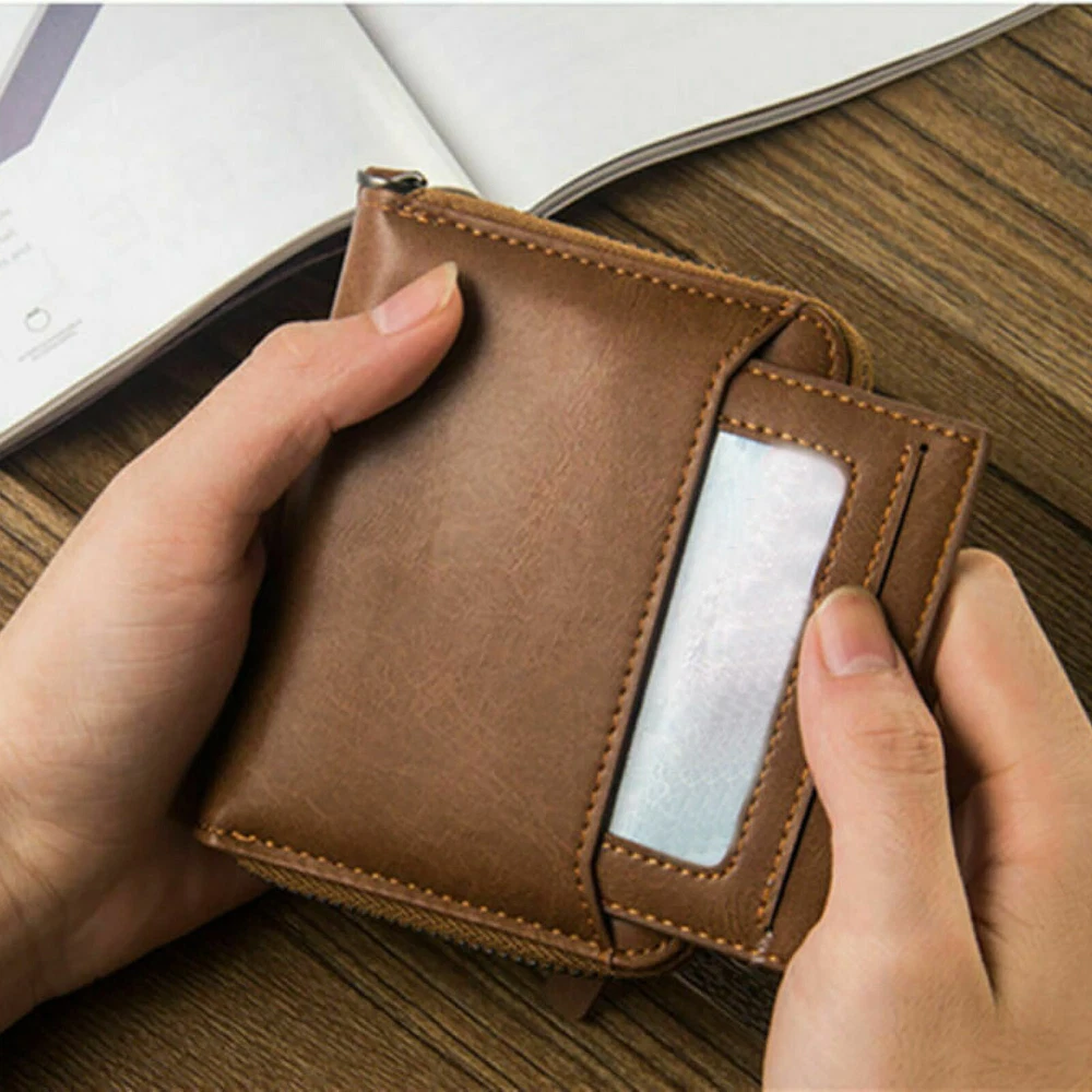 Item Width: As picture Features: Credit Card Theme: Classic Character Family: Classic UPC: Does not apply Type: Wallet Item Length: As picture Country/Region of Manufacture: China gtin13: Does not apply Color: Brown MPN: Does Not Apply Character: Classic Material: Leather Brand: Unbranded Department: Men Accents: Zipper Fabric Type: Leather