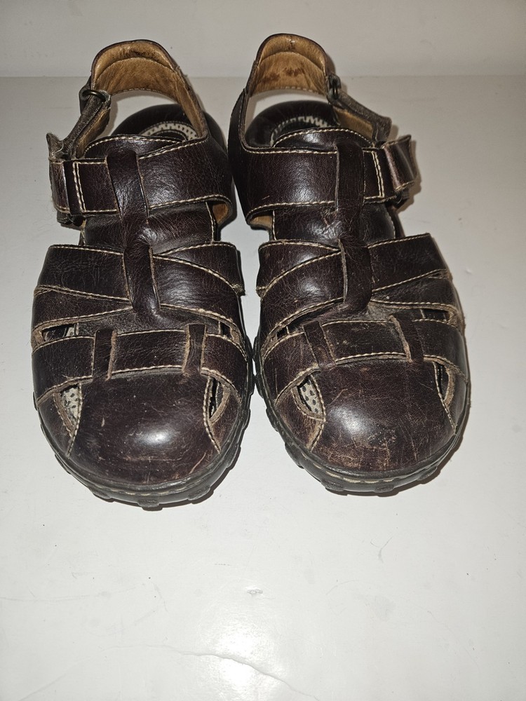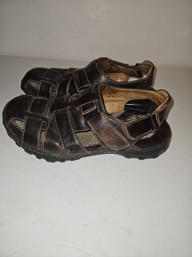 Born Mens Fisherman Sandals Brown Leather Hook Loop Buckle Strap Size 10M