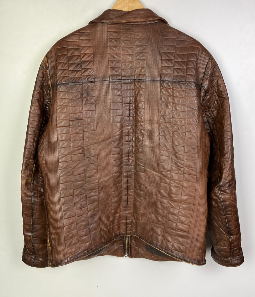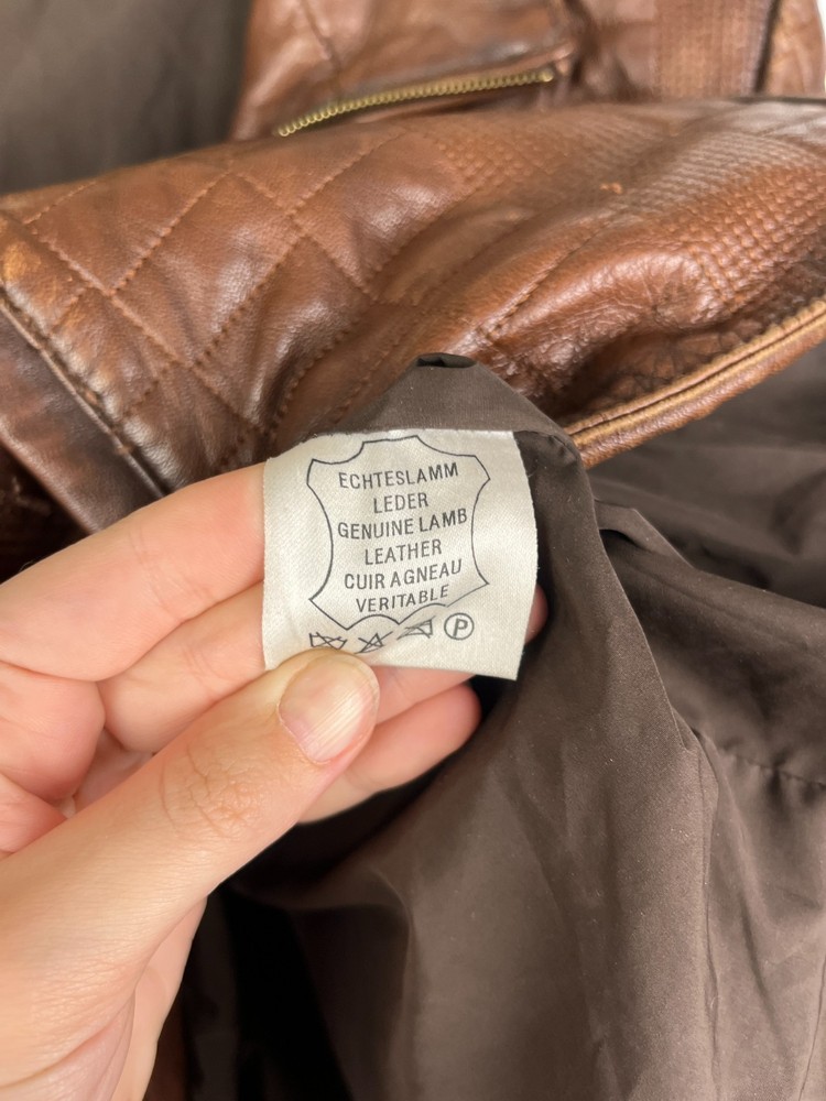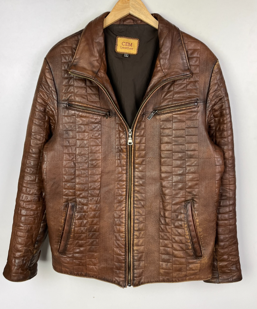 LEATHER BIKER JACKET Guaranteed authentic item Brown in colour, zip closure Fast and secure postage Approximate Measurements (in inches): Armpit to armpit: 22.5" Length: 26" Shoulder seam to cuff: 25" Great condition with only light signs of previous wear, no rips or stains. Label says XL but fits like Large. Same day dispatch by Royal Mail 1st class post for orders placed before 3 pm We send worldwide by Royal Mail. We have a `no questions asked` returns policy so if you`re not happy with your purchase, simply get in touch and we'll do our best to solve the problem (items need to be returned in their original condition with all tags attached). Please check out our other items as we`re always happy to combine postage for multiple purchases. Any questions, please ask. Thanks for looking. (2707/8)