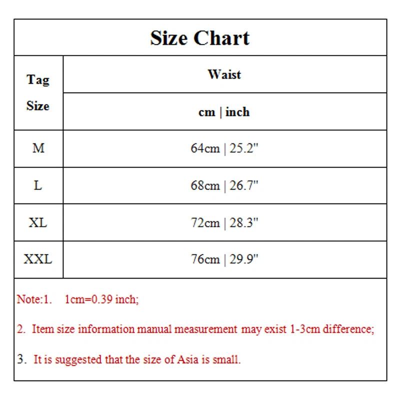 Description Feature:100% Brand new and high quality Gender:Men Size:M,L,XL,XXL Color:red,grey,blue,black,green,light blue Material:Cotton Waist Type:Low Garment Care:Hand Wash,Machine Washable Care Instructions: Wash before wear Cold gentle machine wash Can be washed in a laundry bag Do not bleach Drip dry/Spin Dry Do not wash with light/dark colors About This Item(We aim to show you accurate product information) 1.Please see the size reference to find the correct size. 2.There may be slightly color difference cause of light shooting. 3.Please allow 1-3cm difference due to manual measurement(note 1cm=0.39inch) Package Content: 1 pcs Men Brief (NO Accessories Included) Size Chart Tag Size Waist cm | inch M 64cm | 25.2'' L 68cm | 26.7'' XL 72cm | 28.3'' XXL 76cm | 29.9'' Note:1. 1cm=0.39 inch; 2. Item size information manual measurement may exist 1-3cm difference; 3. It is suggested that the size of Asia is small.