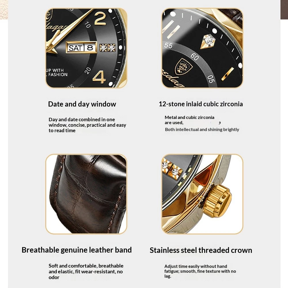Product Description Product Introduction ✅ Premium Stainless Steel Construction Crafted from solid stainless steel with a substantial feel and refined finish. The weight and detail convey durability and understated elegance. ✅ Accurate Japanese Quartz Movement Powered by a reliable imported Japanese quartz movement for precise timekeeping—a trusted companion for daily wear and punctuality. ✅ Luminous Hands for Night Visibility High-definition luminous hands ensure easy reading in low light, blending practical functionality with clean, classic design. ✅ Scratch-Resistant Mineral Crystal Glass Features a mineral crystal face with enhanced coating for clarity, durability, and everyday scratch resistance. ✅ 30M Water Resistance Suitable for hand washing, light rain, and daily moisture. Not recommended for swimming, showering, or submersion. Specifications Case diameter: Approx. 41mm Thickness: Approx. 12mm Strap dimensions: Length: Approx. 20cm: Width: Approx. 2.0 cm Dial Material: Stainless steel hands, premium mineral glass crystal Case Material: Stainless steel Strap Material: Genuine leather Style: Fashion, Luxury, Military, Business, Casual Function Description: 12-hour display, Luminescent, Date display Water Resistance: 30 meters (Suitable for hand washing, not for swimming or bathing) Package Contents: 1x Watch Payment Returns Contact Us Shipping Feedback 1. We only accept eBay payments. 2. All payments must be made within 3 days after auction won. Item may be returned for refund or replacement within 30 days of the purchase date. Returned merchandise must be unused, in original packaging and include all accessories. Shipping costs are non-refundable. Please do not hesitate to leave us your 5 Star ★★★★★ of DSR positive feedback if you are satisfaction with our products ,delivery or services . If you have Any Questions Or Unsatisfied with your purchase, please Email us firstly to get a better solution before you leave a neutral or negative feedback, we work hard to make sure every customer 100% satisfied and resolve anyproblem for you. Please email us first in the following situations: 1.The item can't work properly. 2.The item broken on the post. 3.You bought or received the wrong items. 4.You have not received your shipment within the period. 5.Before you give us Negative feedback. 6.Before you open a case/return on eBay. All questions will be replied within 24 hours (Except Saturday and Sunday or holidays). Thank you for your kindness! 1. eBay Payments Confirmed Addresses Only. 2. No Delivery to Alaska and Hawaii or PR. 3. No P.O. Box and APO/FPO Delivery. 4. Tracking Number will be provided. 5. Domestic shipping is within the 48 Contiguous States of United States, the delivery time is between 2 and 8 days. Items will be shipped by UPS, USPS or Fedex within 3 business day after receiving full payment. 6. International shipping is from China, the delivery time is between 10 and 30 working days. As a seller , Positive Feedback is very important to us. We try our best to let our customers to be happy. If you have any question about your order, please contact us ,please let us know before you Leave the Negative feedback ,We are willing to do our best to make up for it, Thank you very much ! Payment 1. We only accept eBay payments. 2. All payments must be made within 3 days after auction won. Returns Item may be returned for refund or replacement within 30 days of the purchase date. Returned merchandise must be unused, in original packaging and include all accessories. Shipping costs are non-refundable. Please do not hesitate to leave us your 5 Star ★★★★★ of DSR positive feedback if you are satisfaction with our products ,delivery or services . Contact Us If you have Any Questions Or Unsatisfied with your purchase, please Email us firstly to get a better solution before you leave a neutral or negative feedback, we work hard to make sure every customer 100% satisfied and resolve anyproblem for you. Please email us first in the following situations: 1.The item can't work properly. 2.The item broken on the post. 3.You bought or received the wrong items. 4.You have not received your shipment within the period. 5.Before you give us Negative feedback. 6.Before you open a case/return on eBay. All questions will be replied within 24 hours (Except Saturday and Sunday or holidays). Thank you for your kindness! Shipping 1. eBay Payments Confirmed Addresses Only. 2. No Delivery to Alaska and Hawaii or PR. 3. No P.O. Box and APO/FPO Delivery. 4. Tracking Number will be provided. 5. Domestic shipping is within the 48 Contiguous States of United States, the delivery time is between 2 and 8 days. Items will be shipped by UPS, USPS or Fedex within 3 business day after receiving full payment. 6. International shipping is from China, the delivery time is between 10 and 30 working days. Feedback As a seller , Positive Feedback is very important to us. We try our best to let our customers to be happy. If you have any question about your order, please contact us ,please let us know before you Leave the Negative feedback ,We are willing to do our best to make up for it, Thank you very much ! powered by