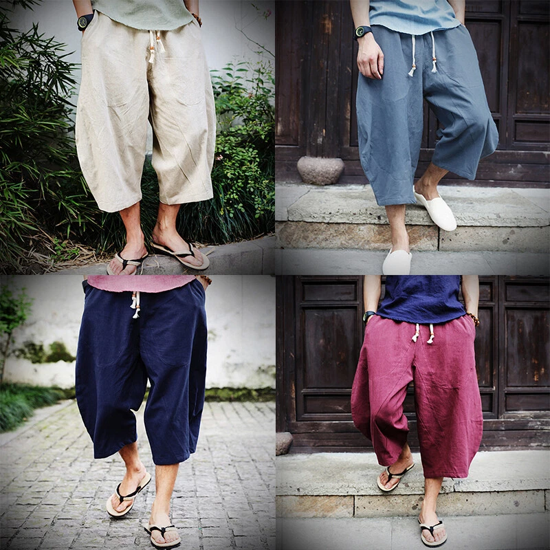 ❀Men's Casual Cotton Linen Shorts 3/4 Length Yoga Fitness Baggy Loose Fit Pants
