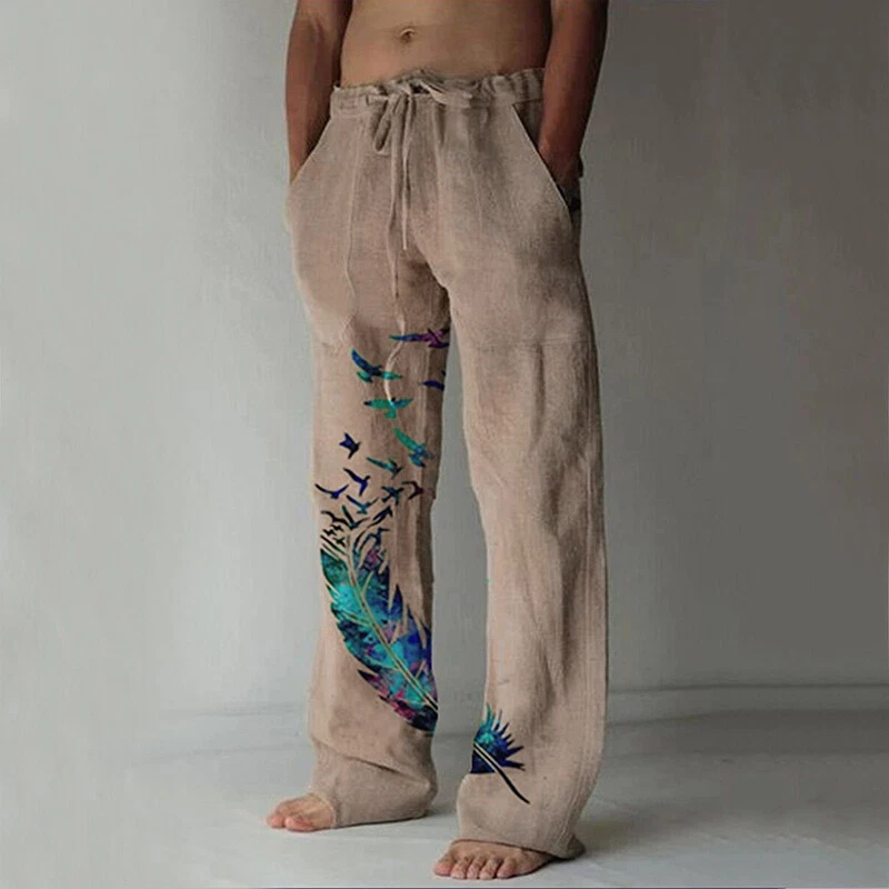 Specifications: 100% Brand new and high quality. Size:M,L,XL,XXL,3XL Color: white,khaki,grey,green Material: Polyester Pant length:full length Waist Type: Mid Pattern:Feather Printed Season:spring,summer Note: 1.Due to the light and screen difference, the item's color may be slightly different from the pictures. Please understand. 2.Please allow 2-3% error due to manual measurement.Please make sure you don’t mind before you mid. 3.Size doesn’t fit all.Please carefully check size chart and select the size based on your real size. aWash before wear Cold gentle machine wash Do not bleach Do not tumble dry Drip dry Package:1 pcs men pant