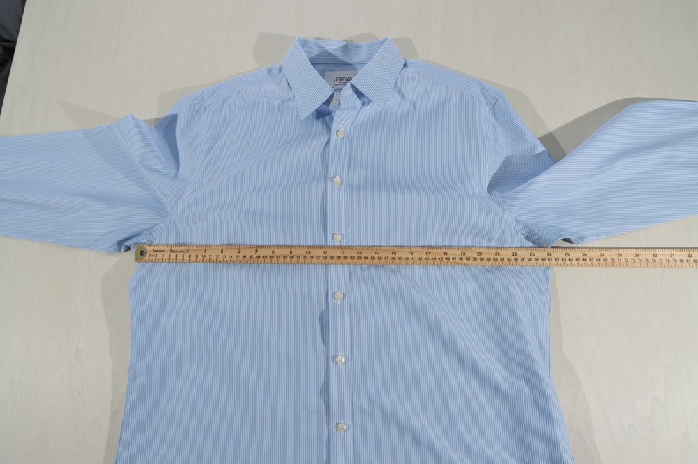 The Men's Charles Tyrwhitt Non Iron Slim Fit Dress Shirt in Blue Stripe is a sophisticated and stylish choice for any man's wardrobe. Made from 100% cotton, this shirt features a slim fit design that is both flattering and comfortable. The blue and white striped pattern adds a classic touch, while the button-down closure and button-down collar give it a smart and polished look. With a sleeve length of 36 inches and a neck size of 17.5 inches, this shirt is perfect for a range of formal occasions, from weddings to business meetings.