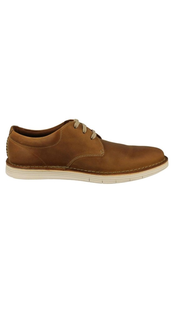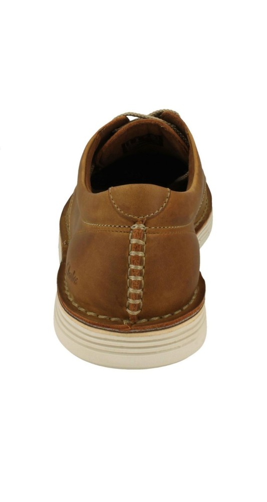 Men's Clarks Stylish Lace Up Shoes in Tan (Brown) with a leather upper and lining, featuring a synthetic sole. The shoes are UK size 14, US size 15, and EU size 49.5. The model is Forge Vibe, suitable for casual wear.