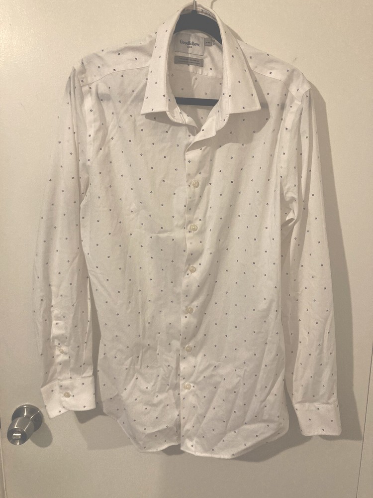 Crafted for comfort and style, the Men's Standard Fit Long Sleeve Button Down Shirt from Goodfellow & Co is a wardrobe essential for those who appreciate a classic look. This dress shirt, available in size large, features a versatile black color that pairs seamlessly with any suit or casual attire. The shirt is designed with a stretch cotton blend, ensuring a balance of durability and ease of movement throughout the day. The collared neckline with a button-down placket adds a touch of sophistication, making it suitable for office wear or social events. With its solid pattern and standard fit, this shirt offers a timeless appeal for the modern man.