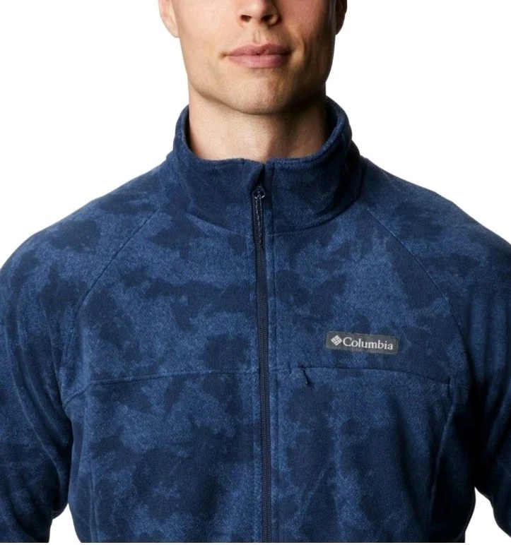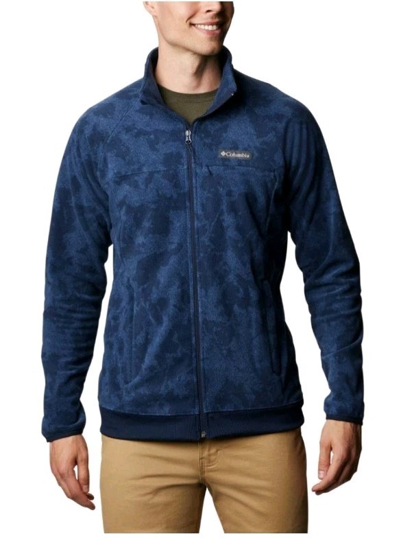 The Columbia Crater Summit Fleece Jacket in blue is a stylish and functional outerwear piece designed for men in size Large. Made from polyester fleece, this jacket is perfect for various occasions including travel, casual outings, workwear, and business meetings. Featuring a stand-up collar, full zip closure, and multiple pockets for convenience, this lightweight and breathable jacket is ideal for outdoor activities in all seasons. With a geometric pattern and logo accents, this Columbia jacket combines practicality with a touch of nature-inspired style, making it a versatile and classic addition to any wardrobe.