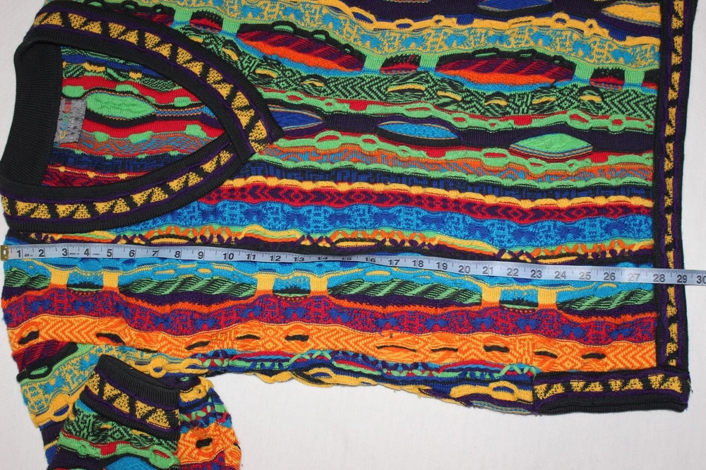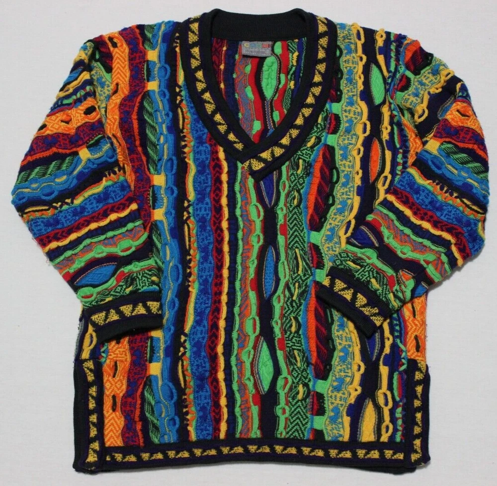 Vintage Coogi 3D Knit Wool V-Neck Sweater Size S Oversized Fit (Fits M to L) Measurements in pictures In Excellent Condition