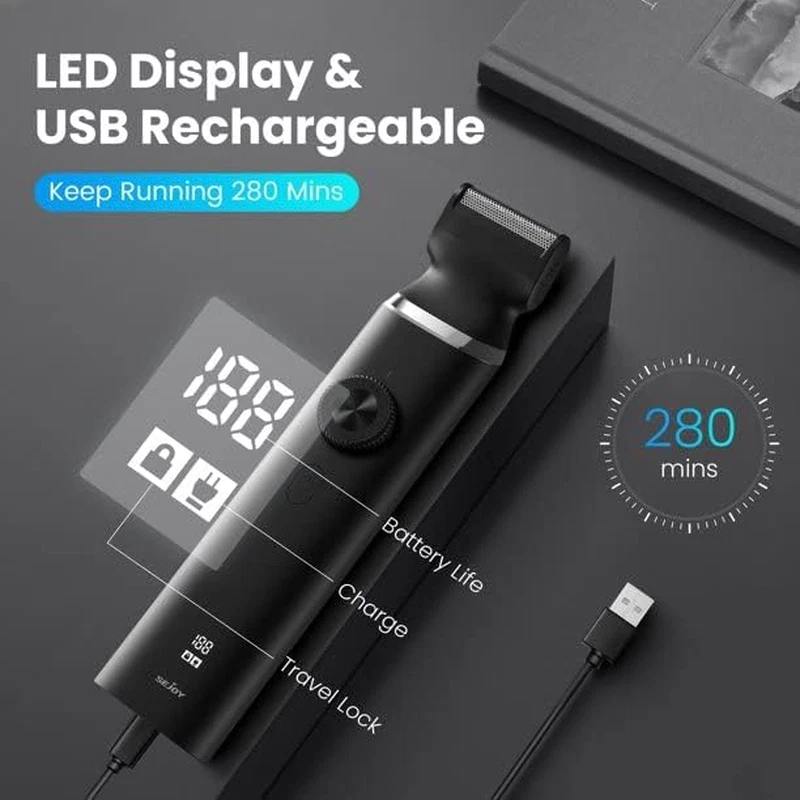 This beard trimmer is a game-changer! The cordless design and waterproof feature make grooming so convenient. It trims smoothly, handles all hair types, and the LED display is a nice touch. Love that it’s rechargeable and comes with multiple attachments—perfect for beard, mustache, and even nose hair. Lightweight yet powerful, it’s a must-have for any man’s grooming kit. Highly recommend!