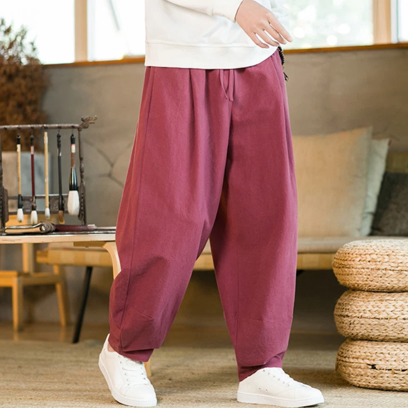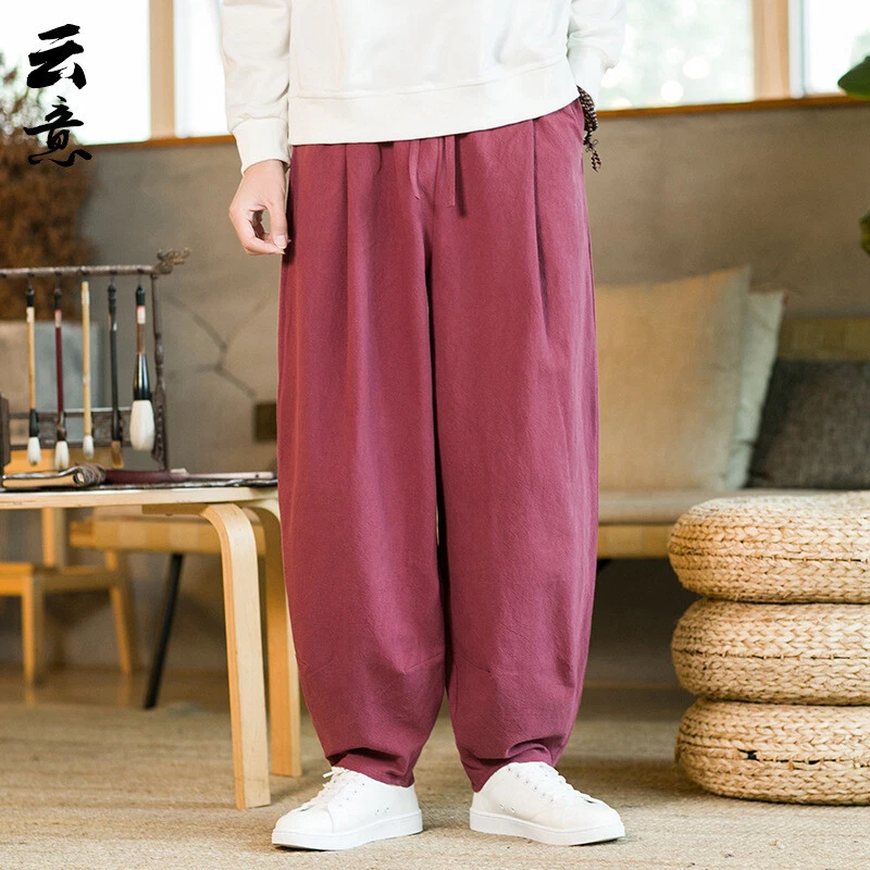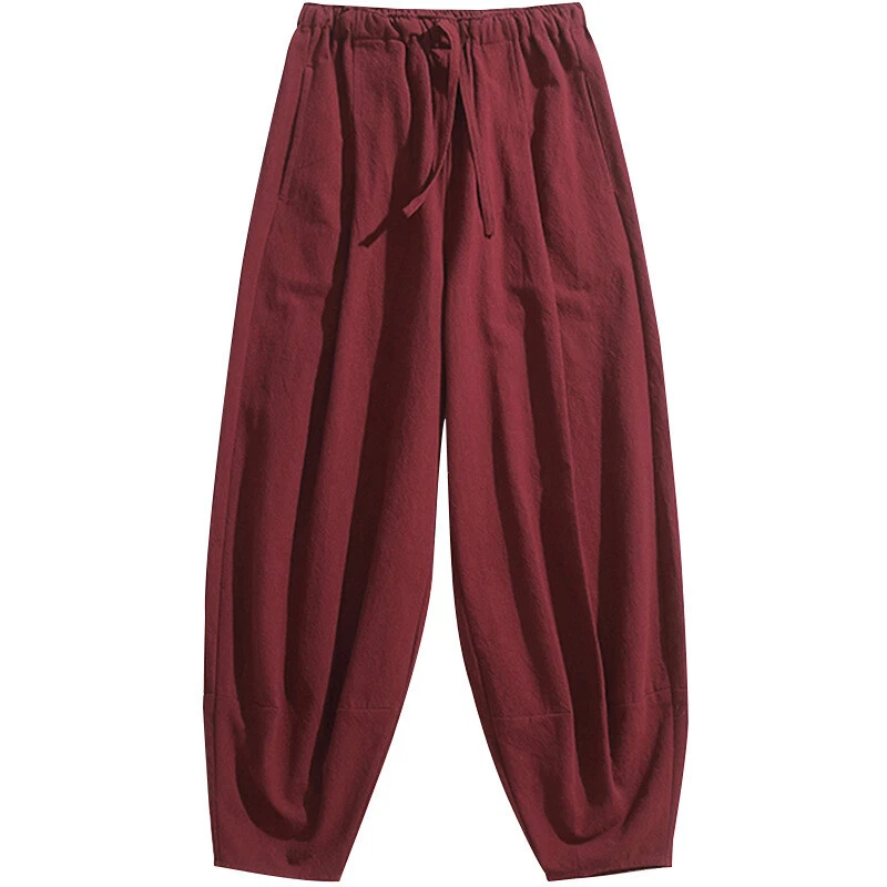 Product Description: * Item:Mens Cotton Linen Pants Casual Trousers Drawstring Kung Fu Tai Chi Harem Bottoms * Condition: 100% Brand New * Color:wine red.black.navy * Size:AsianM-5XL * Package:1pc (without any accessories ) Please note: 1.Please allow a little error due to manual measurement. 2.The color maybe a little difference because of the light,screen reflectio etc