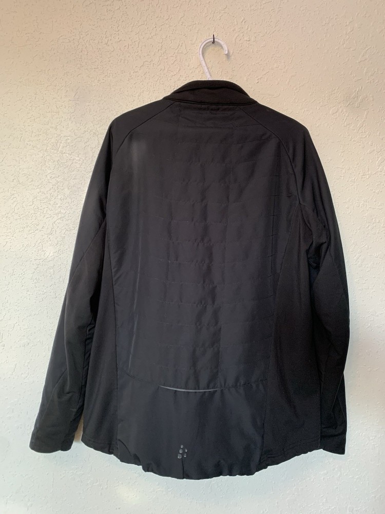 The Men's Craft Performance Jacket is a versatile and stylish outerwear option for casual occasions. Made from lightweight polyester fabric with a stand-up collar and full zip closure, this windbreaker jacket is perfect for winter, fall, and spring seasons. It features lined interior, multiple pockets for convenience, and accent logo detailing. The regular fit and size L make it a comfortable and practical choice for various activities like track and field, gym training, walking, cycling, skiing, hiking, and running. Easy to care for with machine washable instructions, this black jacket from the brand Craft is a must-have for any man's wardrobe. Only worn a couple times, I can send more pictures or info if you’d like 👍🏼