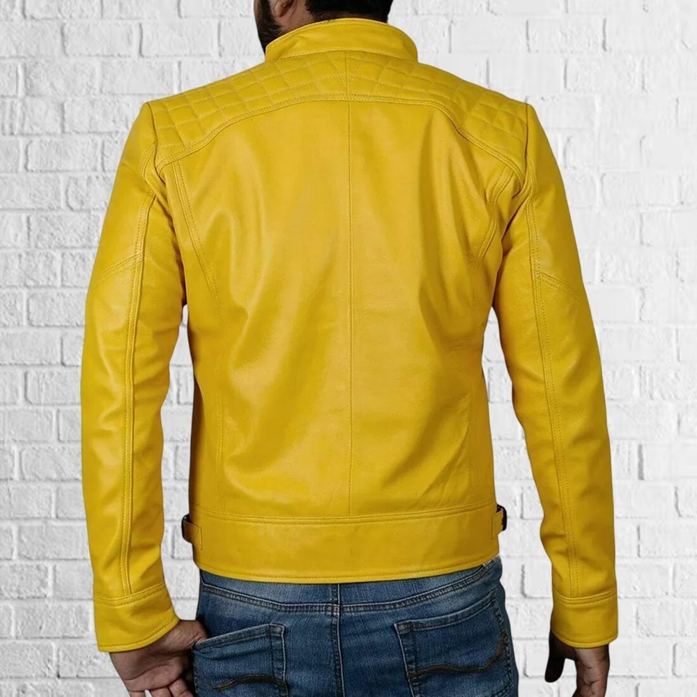 Product Description : This men’s yellow lambskin leather jacket brings bold energy and standout style 💛. Crafted from soft, premium lambskin, it features a sleek zip closure and practical pockets for everyday ease 🧥. Vibrant, modern, and effortlessly cool — perfect for making a statement 😎. · Jacket Size Guide : This is not USA/UK/EU Size , this is standard size which you need to select as per your actual body size · For a chest size of approximately 36 to 37 inches, choose size XS. · For a chest size of approximately 38 to 39 inches, select size S. · For a chest size of approximately 40 to 41 inches, go with size M. · For a chest size of approximately 42 to 43 inches, opt for size L. · For a chest size of approximately 46 to 47 inches, pick size XL. · For a chest size of approximately 48 to 49 inches, choose size XXL. · For a chest size of approximately 50 to 51 inches, select size XXXL. Terms of Sale We ship through DHL, FedEx, Aramex, and India Post. Orders are dispatched within 1–3 business days after receiving payment. For EU and other European countries, customs may charge additional taxes before delivery. Please check with your local customs office for details. These charges are the buyer’s responsibility, as we only charge for the product and shipping. All items are 100% authentic. Due to lighting and screen differences, actual colors may vary slightly, but we ensure the closest match to the original. Zipper pullers and accessories may differ from the pictures based on availability. Buyers are responsible for return shipping costs. Returns are accepted within 7 days of delivery, provided the item is unused and in perfect condition. Shipping fees are non-refundable. Customized items are non-refundable. Postage and packaging costs are non-refundable. If exchanging an item, the buyer must cover return shipping and postage costs for the replacement. Please check our size chart carefully before ordering to avoid sizing issues.