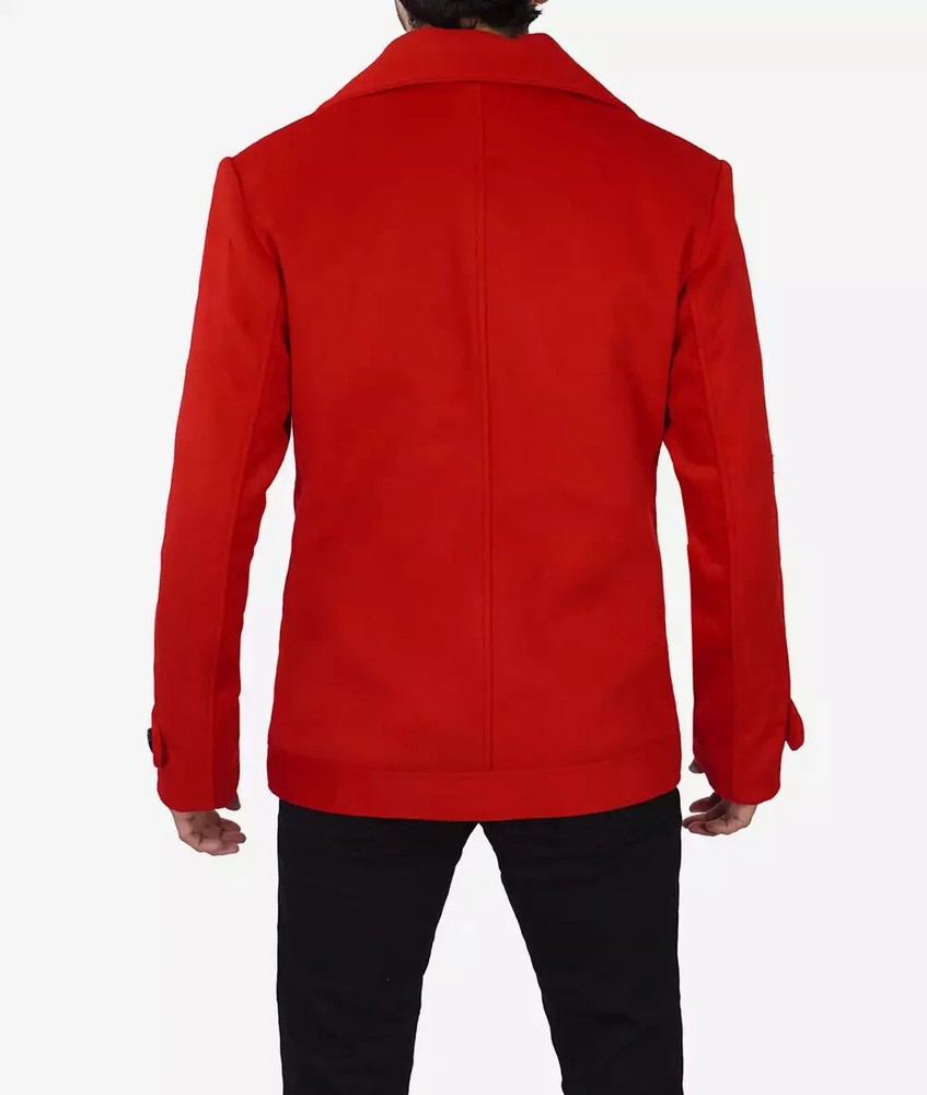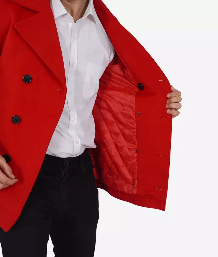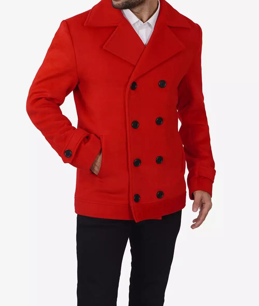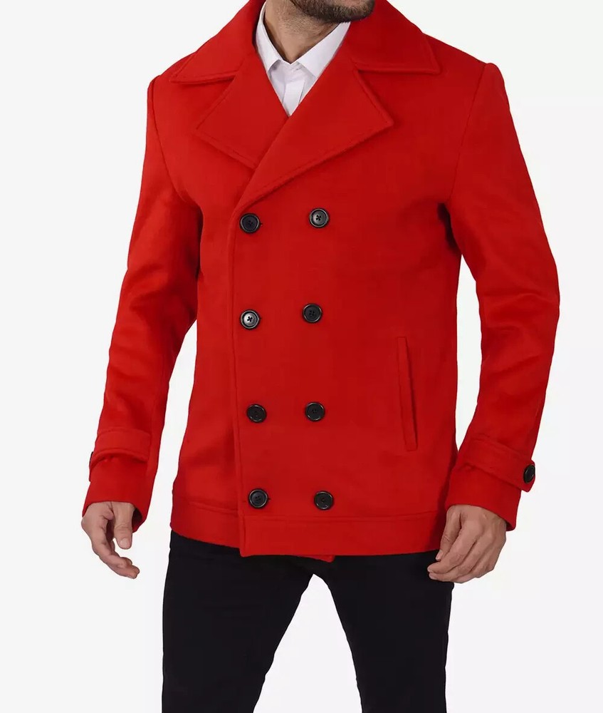 Red Double Breasted Wool Pea Coat S A must-have layer to take you from the office to weekend, this double-breasted wool pea coat is a smart addition to your casual wardrobe. Crafted in soft blended wool, it features a wide lapel collar, button closure and comfortable fit for ease of movement. The design boasts two outer pockets and two inside pockets for added convenience. Material: Premium Quality Wool Blend Lining: Soft Polyester Front: Double Breasted Button Closure Details: Wide Lapel collar Style: Pea Coat Style Pockets: Two Outer Pockets, Two Inside Pockets Color: Red