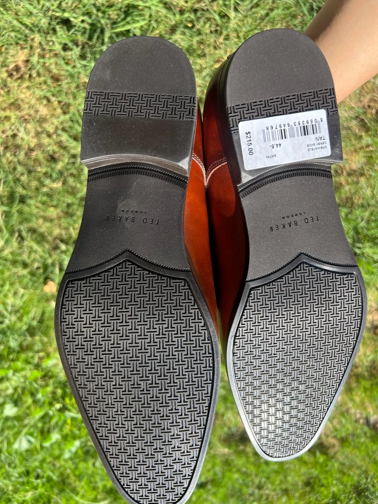 New Without Box Product Details: Introducing the 'Ted Baker Watele Leather Derby' from the quirky and irreverent British fashion brand, Ted Baker. These oxford shoes in tan leather feature a lace-up closure, lightly padded leather insole, and a rubber sole with traction for added comfort and durability. With a 1.25 inch heel, these stylish derby shoes are perfect for any occasion. Handcrafted from fine Italian leather, this derby is the definition of understated elegance with a tough of classic brogue detailing on the heel. These Ted Baker Watele Leather Derby shoes are a must-have addition to any man's shoe collection