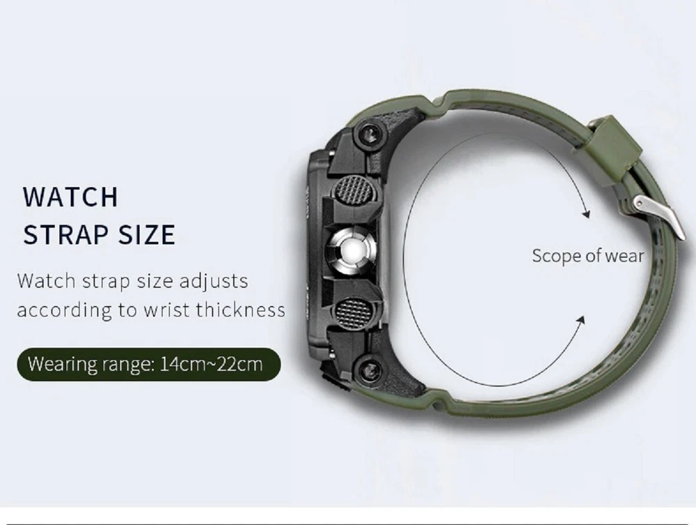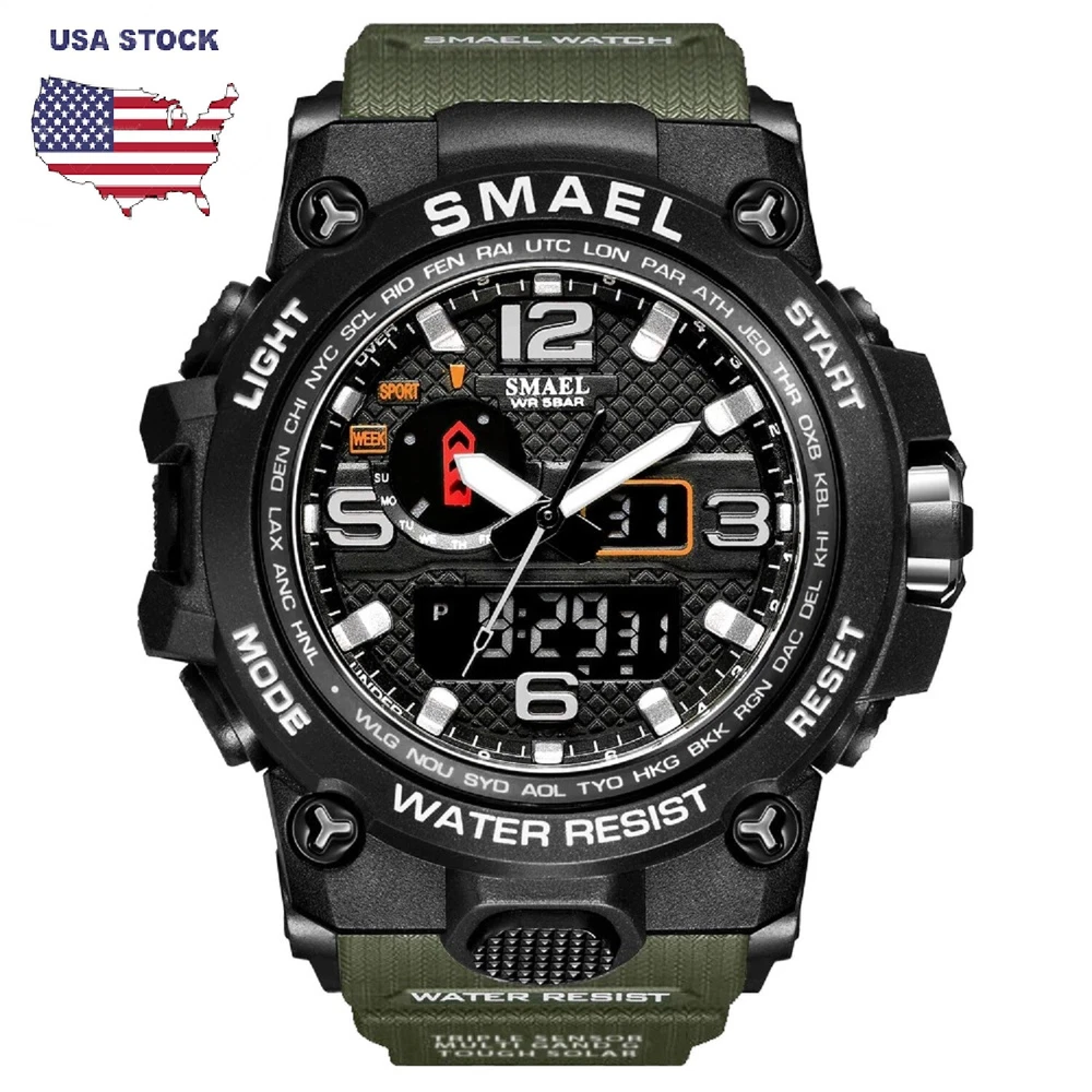 best_buyer_stores Men's Dual Display Sports Watch Waterproof LED Army US for Free Fast Shipping ( 4 - 7 Days Super Fast Delivery ) Description This watch is Luxury, elegant and fashionable, bringing it to show your elegance and provide you with an extraordinary luxury experience. Consist of many multifunctional features and appearance to the US Army/Military. And has excellent quality and beautiful packaging, is very suitable for giving as a gift to men. Main Features: -100% new label and high quality; -Top brand luxury high quality design dial, shows precise time. -Movement: Digital, Analog and accurate travel. -Dual time shows with LED backlight function. - LED display , Shock Resistant , Date , Complete Calendar , Multiple Time Zone , Alarm, Water Resistant, Stop Watch, 12/24 Hour Clock etc... Specifications Type: Men's Sports Watch Style: Sport, Fashion, Casual, Military Movement: Japan Original Digital Movement Colors Available: Black + Blue, Army Green Case Material: Strong Rubber + High Strength Hardened Glass Strap Material: Strong PU Watch of Dial: Round Dial Diameter: 48mm Case Thickness: 17mm Band Width: 21mm Water Resistance Depth: 5ATM (50M) ( NOT RECOMMENDED TO PRESS ANY BUTTONS UNDER WATER ) NOTE: Package Included: - 1 × Genuine Sports Watch (NO BOX) - 1 × User Manual Booklet Seller's Blessing We know that when a person buys a new item, the buyer hopes to have a new beginning and make a little change in his life. Watch is a friend of time, I wish you a new beginning, cherish time and make progress. Please contact us if you have any questions or concerns before or after you purchase. We will reply to you within 24 hours. Hope you will get 100% satisfaction! Usually the package will be shipped within 2 working days after the payment is confirmed. All the orders will be packed carefully with excellent quality and good condition. Thanks for looking to purchase from our store! You will get a Great Positive feedback from us! And also your positive feedback is highly appreciated. Please contact us immediately if you have any issue with the transaction before opening a request/case. We are honest people and do not worry about anything, we are here to serve you with our best quality service. Thanks a lot. Return/ Replacement Returns accepted if the product is not as described.
