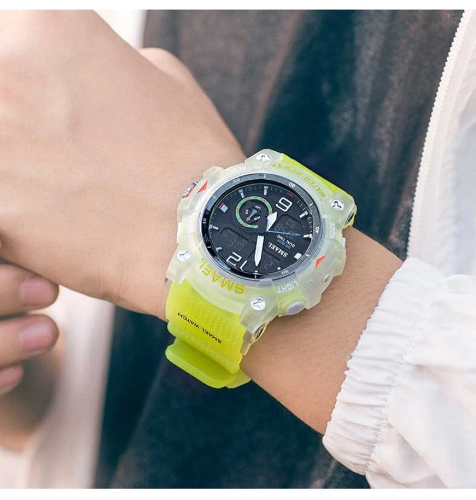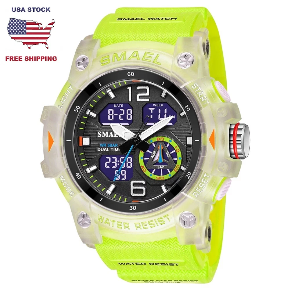 best_buyer_stores Men's Dual Display Waterproof Quartz Sport Watches LED US for Free Fast Shipping ( 4 - 7 Days Super Fast Delivery ) Description This watch is Luxury, elegant and fashionable, bringing it to show your elegance and provide you with an extraordinary luxury experience. Consist of many multifunctional features and appearance to the US fashion. And has excellent quality and beautiful packaging, is very suitable for giving as a gift to men. Main Features: -100% new label and high quality; -Top brand luxury high quality design dial, shows precise time. -Movement: Digital, Analog and accurate travel. -Dual time shows with LED backlight function. - LED display , Shock Resistant , Date , Complete Calendar , Multiple Time Zone , Alarm, Water Resistant, Stop Watch, 12/24 Hour Clock etc... Specifications Type: Men's Sports Watch Style: Sport, Fashion, Casual, Military Movement: Japan Original Digital Movement Color: Fluorescent Green, Black Case Material: Strong Rubber + High Strength Hardened Glass Strap Material: Strong PU Watch of Dial: Round Dial Diameter: 51mm Case Thickness: 18mm Band Width: 22mm Water Resistance Depth: 5ATM (50M) ( NOT RECOMMENDED TO PRESS ANY BUTTONS UNDER WATER ) NOTE: Package Included: - 1 × Genuine Sports Watch (NO BOX) - 1 × User Manual Booklet Seller's Blessing We know that when a person buys a new item, the buyer hopes to have a new beginning and make a little change in his life. Watch is a friend of time, I wish you a new beginning, cherish time and make progress. Please contact us if you have any questions or concerns before or after you purchase. We will reply to you within 24 hours. Hope you will get 100% satisfaction! Usually the package will be shipped within 2 working days after the payment is confirmed. All the orders will be packed carefully with excellent quality and good condition. Thanks for looking to purchase from our store! You will get a Great Positive feedback from us! And also your positive feedback is highly appreciated. Please contact us immediately if you have any issue with the transaction before opening a request/case. We are honest people and do not worry about anything, we are here to serve you with our best quality service. Thanks a lot. Return/ Replacement Returns accepted if the product is not as described.