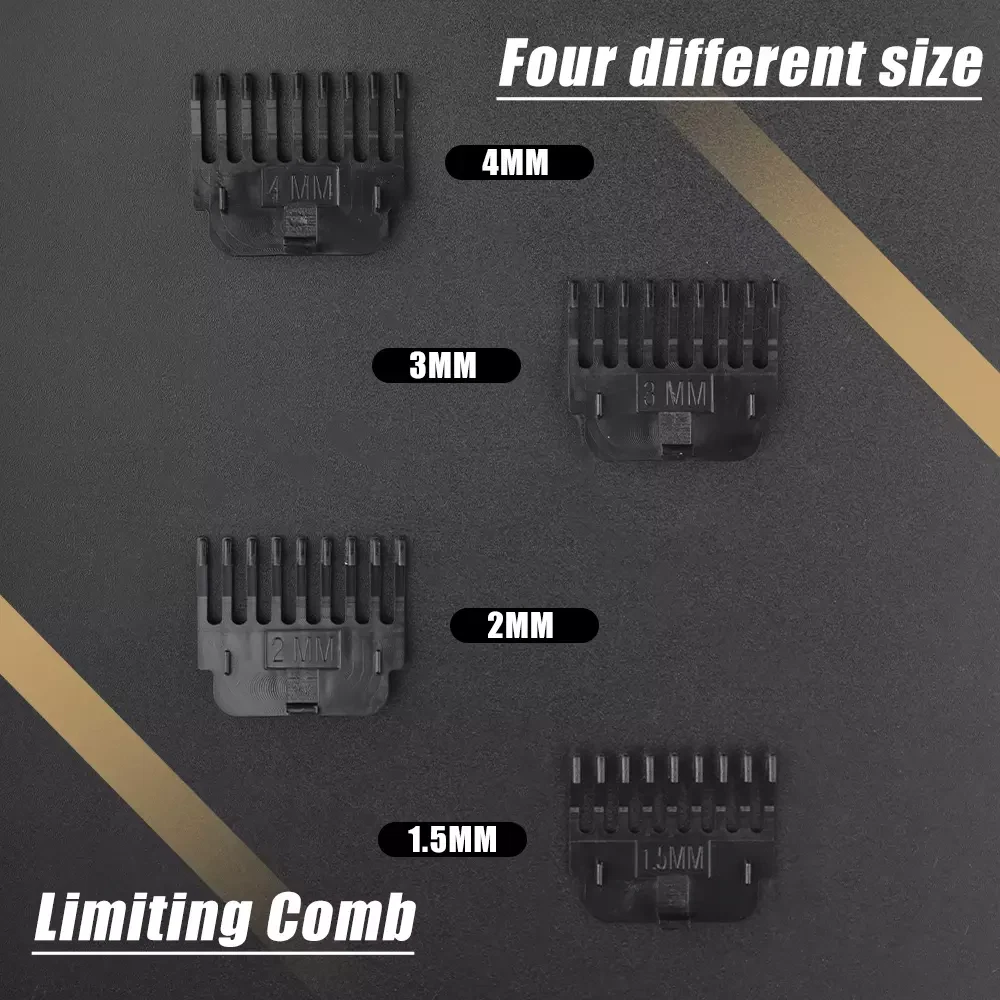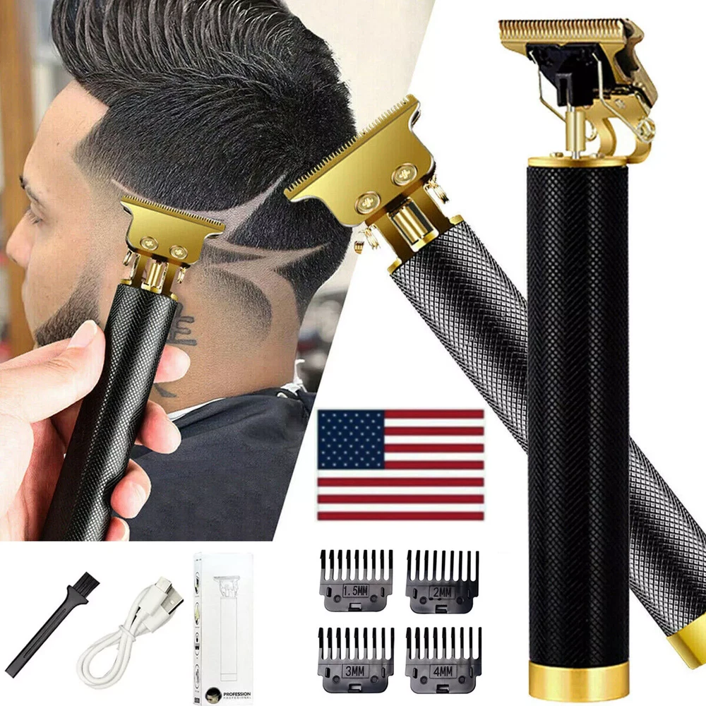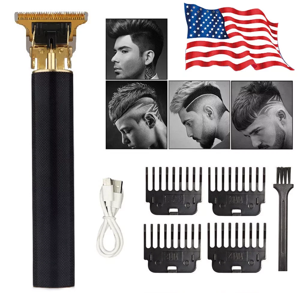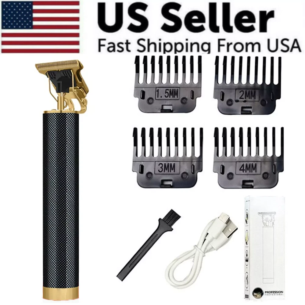 Professional Hair Clippers Trimmer Shaver Clipper Cutting Beard Cordless Barber Features: T BLADE TRIMMER DESIGN: The T blade is made of carbon steel and ceramic, it's very sharp to cut your hair off without hurting your skin. USB CHARGING: The cordless design is convenient for you to carry with during your travel or for home use. ERGONOMIC METAL DESIGN: Slim body design makes it easy to handle with ,the all metal body design makes it sturdy and durable to use compared with traditional plastic hair clippers. WIDE APPLICATION: Used for cutting your hair and removing your beard, the hair under your arms , your hands, legs, or your body hairs. Perfect for men women children or elderly. Note: Due to manual measurement, there will be an error of +/- 5 mm. Due to the shooting angle and the display, the goods may have a color difference from the picture. Package Included: 1 x Hair clipper 1 x USB charging cable 1 x Cleaning brush 1 x Manual 1 x Box 4 x Limit combs
