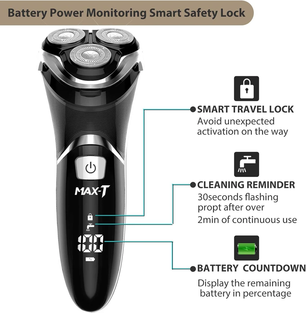 Product Description Men's Electric Shaver - Corded and Cordless Rechargeable 3D Rotary Shaver Razor for Men with Pop-up Sideburn Trimmer Wet and Dry Painless 100-240V Black (Metal Black) 3D Floating Head Shavers: mens electric razor equipped with 3 double-ring floating electric razor heads and double-track ultra-thin cutter net and self-sharpening steel blade, automatically adapts to the contours of your face and neck even jaw, can gently help the shaver glide smoothly over your skin, gives you a comfortable and close shaving experience Faster USB Charging & LED Display: mens electric shaver comes with a USB cable(adapter not included),can be connected to the computer, power bank, car, and other USB device, more secure and convenient; Provide 120 minutes of cordless runtime after 1 hour quick charging; Battery capacity is designed with battery status 0%-100% display to remind you of recharging, avoiding running out of power mid-shave Upgraded Pop-up Trimmer: this face shaver for men with double-blade pop-up trimmer, one touch to open, trim and detail your beard and sideburns for a clean-cut look to complete your facial hair grooming routine; Travel Safety Locks: easily active smart safety lock by continuously pressing on/off button for 3s to avoid unexpected starting up on a trip IPX7 Waterproof Dry & Wet Shaving: the whole body of the rechargeable mens shavers is waterproof, you'll get a convenient dry shave or a refreshing wet shave with gel or foam, even in the shower; Clean the shaver with ease, at the touch of a button, flip open the shaver head and rinse with water; Note: we recommend you to replace the shaver head every 6 month for best shaving result Best Gift and Intimate Sevice: the electric razor for men with beautiful modern looking and smart design, it is a perfect gift for father, husband, boyfriend and son on Father's Day, Valentine’s Day, birthday, christmas or any other special occasion; If you don't love this electric shaver for any reason, just contact us at any time, we will answer your questions as our first priority and give you the satisfactory solution within 24 hours About Us We are a reputable seller with many years of experience selling on eBay. Our goal is to provide high-quality products and excellent customer service. Shipping Items will be shipped within 1-3 business days when we received payment. (Orders are not processed on weekends & holidays) Tracking information will be sent once item is shipped. Delivery time depends on destination and other factors Item is shipped to ebay address. Leaving correct address can minimize delay. For international shipping and shipping to Guam, Hawaii and Alaska, Please contact us before placing the order. International buyers please note: Import duties, taxes and charges are not included in the item price or shipping charges. These charges are buyer’s responsibility. We will try our best to reduce the risk of the custom duties. Local pick-up is unavailable at the moment. Contact Us We reply any email messages within 1 business / working days(off-duty at weekend). If you do not get a response from us, then please check your junk or spam mailbox. Our Business hours: Mon-Fri 9:00-18:00, UTC/GMT +8 hours. Please contact us either by clicking "contact seller" in the "purchase history" section or simply click "ask a question" at the bottom of this page. If you are unsatisfied with our item or service, please contact us before leaving any feedback. We are committed to resolve all issues in a friendly and satisfactory manner.