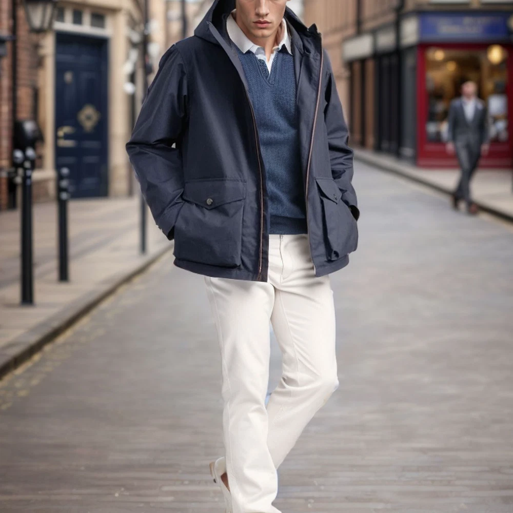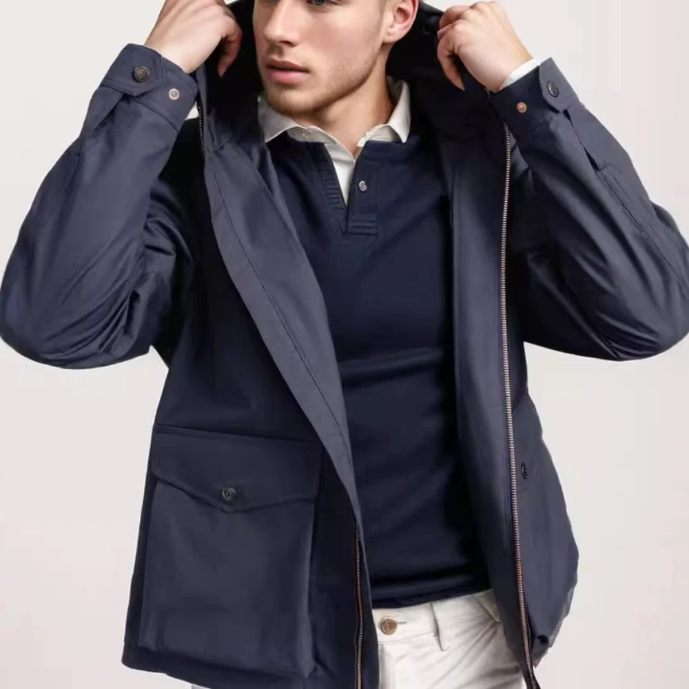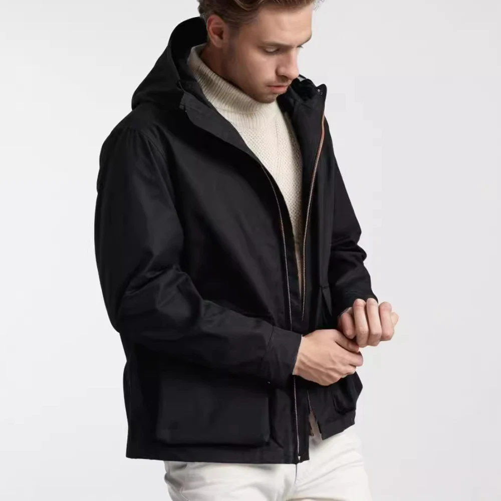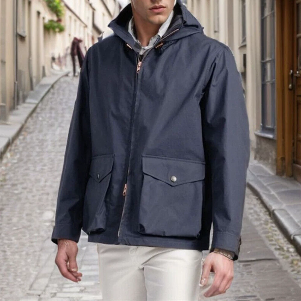Men's Fashion Jacket Hooded Zipper Trench Coat Jacket Casual Windbreaker Outwear