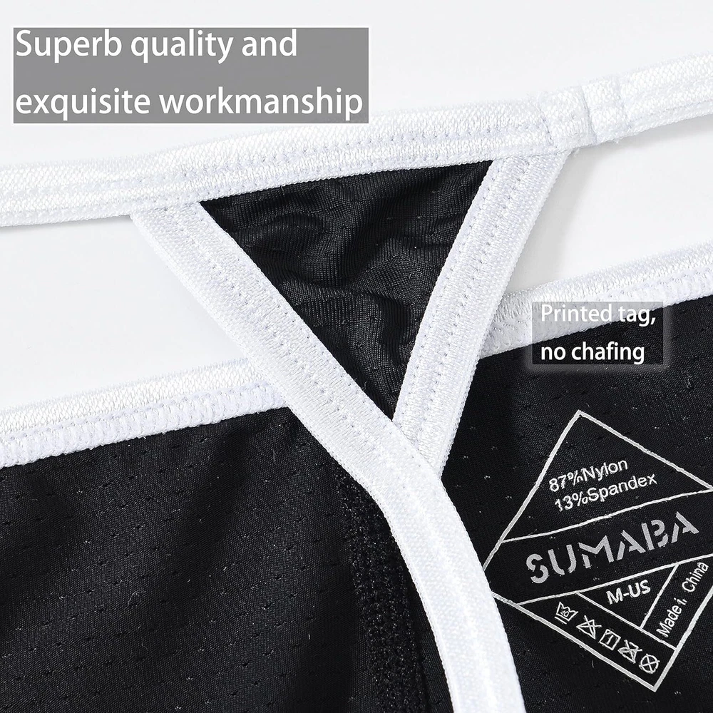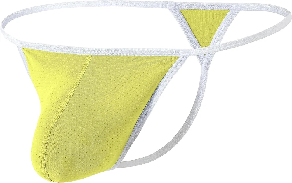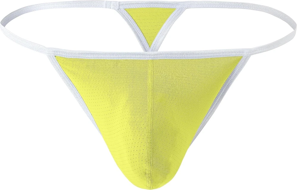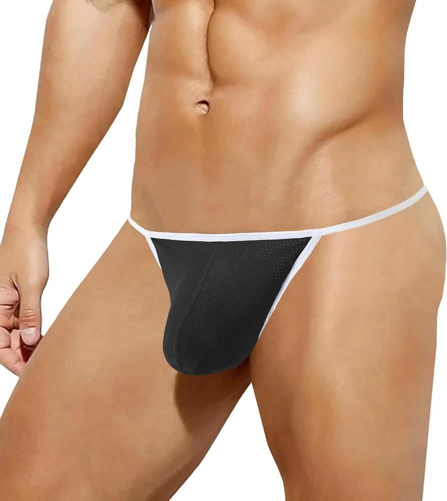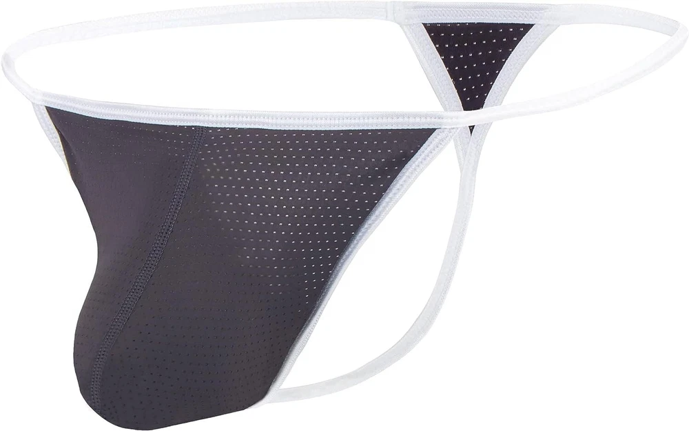 About this item 【Soft FABRIC】This male thong is made of 54% Nylon, 39% Polyester, 7% Spandex, textured appearance with good hand feel, soft, skin-friendly, and moisture-wicking. This lightweight men's micro thong underwear is a good sculpting thong 【UNIQUE DESIGN】This men's thong panties designed with contour pouch, enough space for bulge and has funtional enhancing effect. T-Back style of this g string mens underwear with less coverage make sure air circulation to prevent from the growth of odor and keep your intimate area dry all day. The pouch jock straps features soft elastic strings make sure fitted and comfortable 【INTIMATE DETAILS】This tagless man thong won't pinch or bind, make sure comfort. This anti chafing no show thong panties for men features good construction design so that strings won't slip, make sure comfortable and keep boy stay in place. Elastic low waist design of this hot men's g-string thong is good to show your charming curves and your sexy 【WASH CARE】Machine or Hand Wash Cold, Do Not Bleach 【WAIST SIZE】5 Sizes of this black thong for men available. M=32-34'', L=36-38'', XL=40-42'', XXL=44-46'', 3XL=48-50''