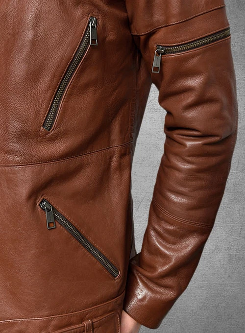 Men's Genuine Leather Biker Jacket - Stylish Brown Real Leather Motorcycle Coat.