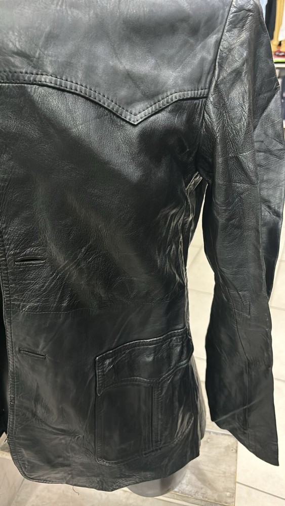 Brand:UnbrandedSize:42Vintage:YesDepartment:manSize Type:Regulargtin13:Does not applyOuter Shell Material:LeatherType:JacketStyle:JacketUPC:Does not applyClosure:ZipperColor:Black