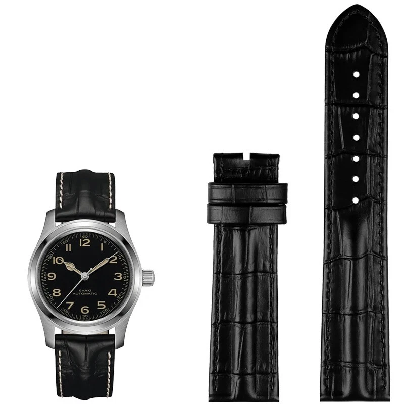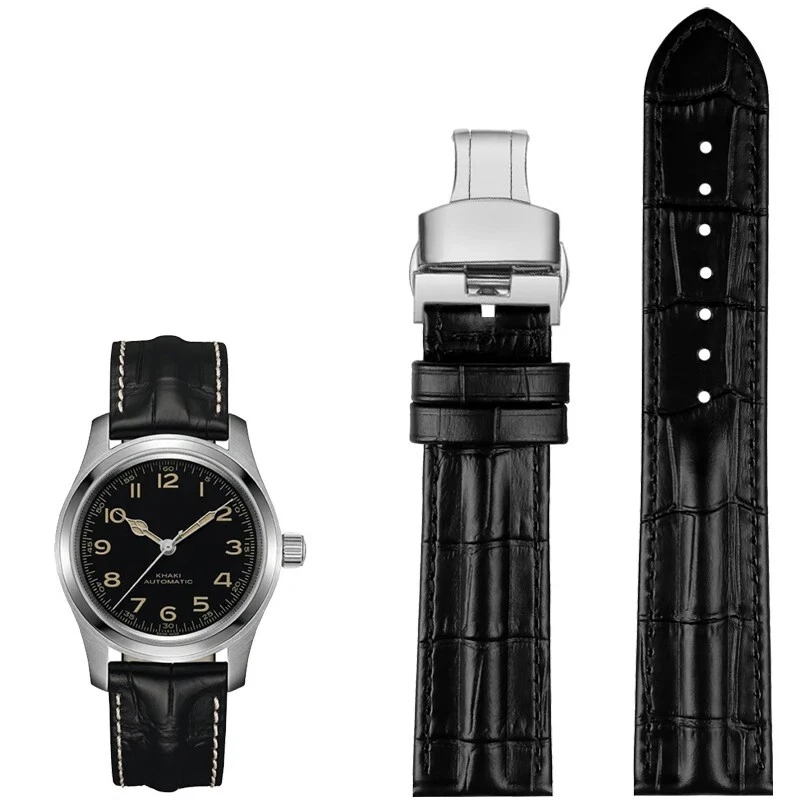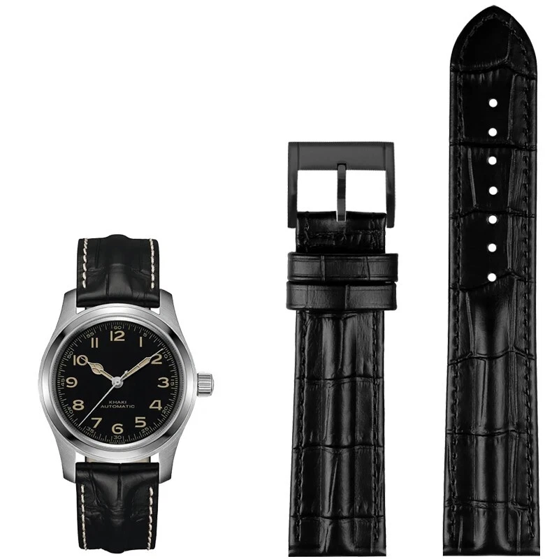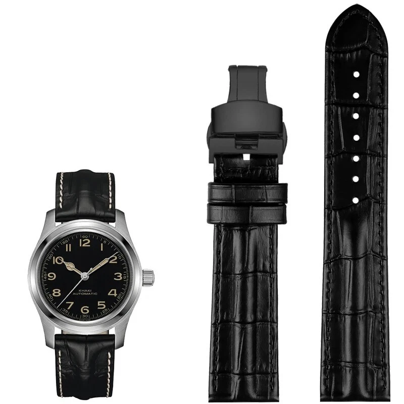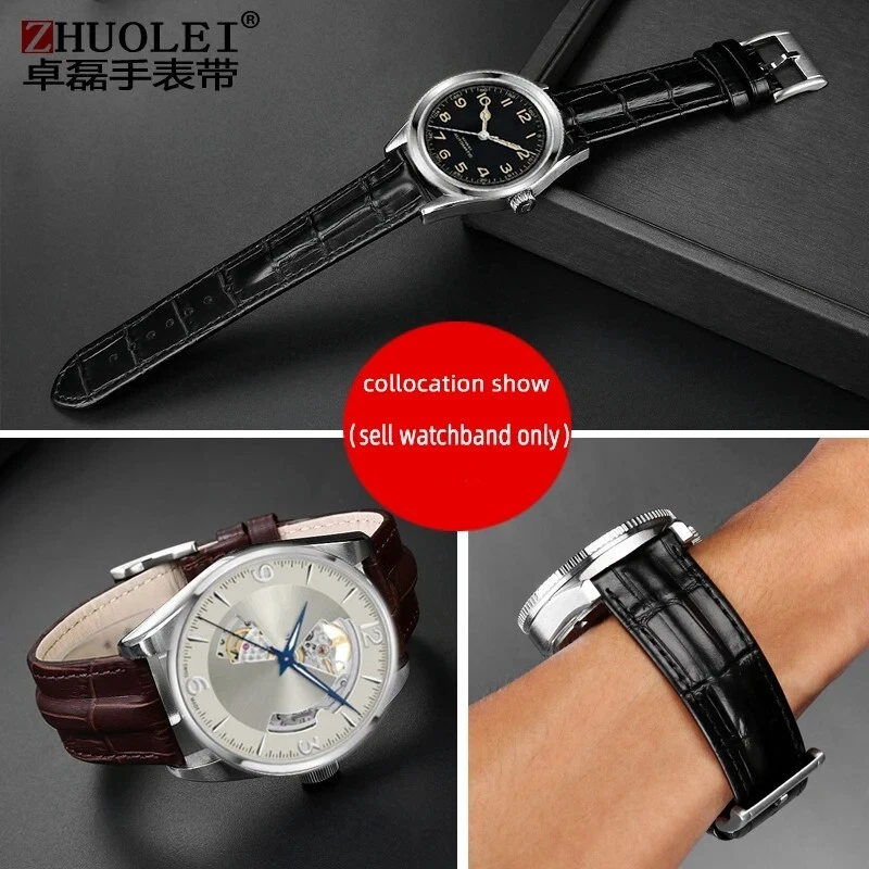 Description: Band Width: 20mm, 22mm Material: Genuine leather Color: Black / Brown / Black White Buckle: Stainless Steel Clasp Length: about 120+75mm Thickness: about 3-5mm Type: Fashion Package: 1 x watch strap 1 x loading strap tools 3 x hand ears (pins)