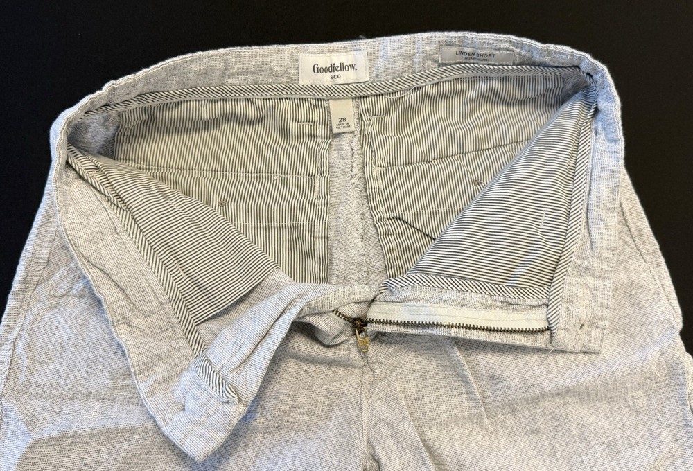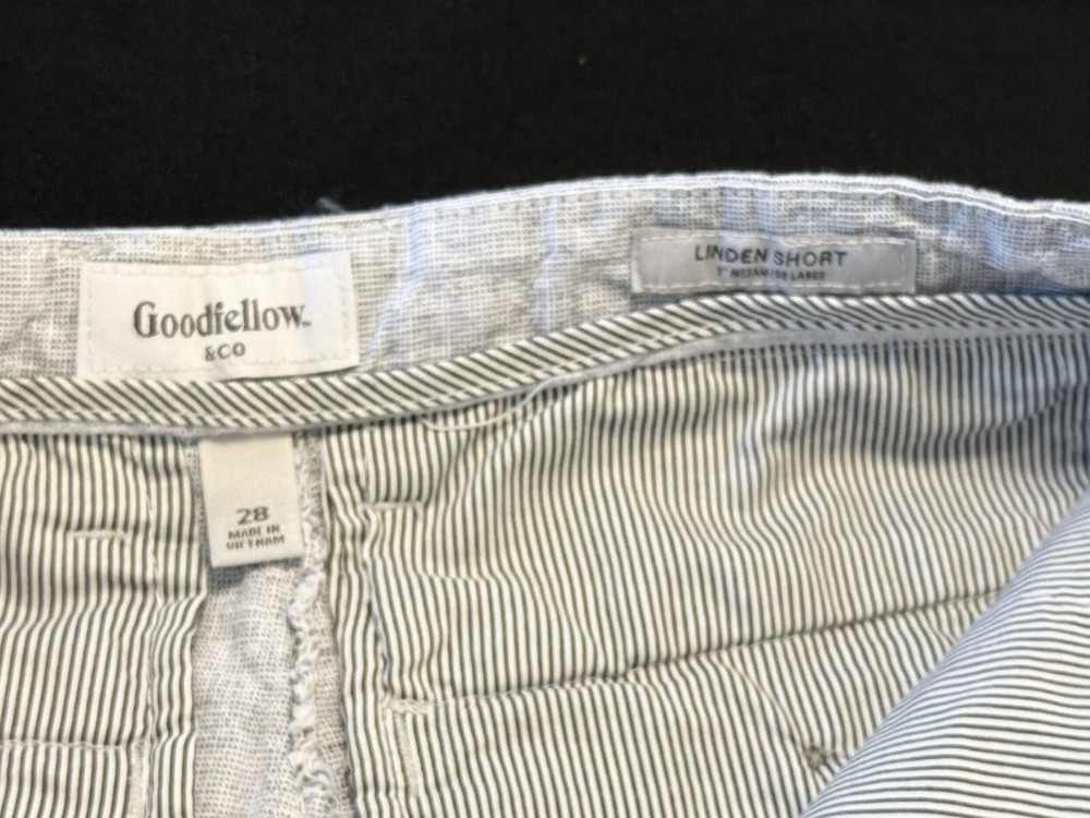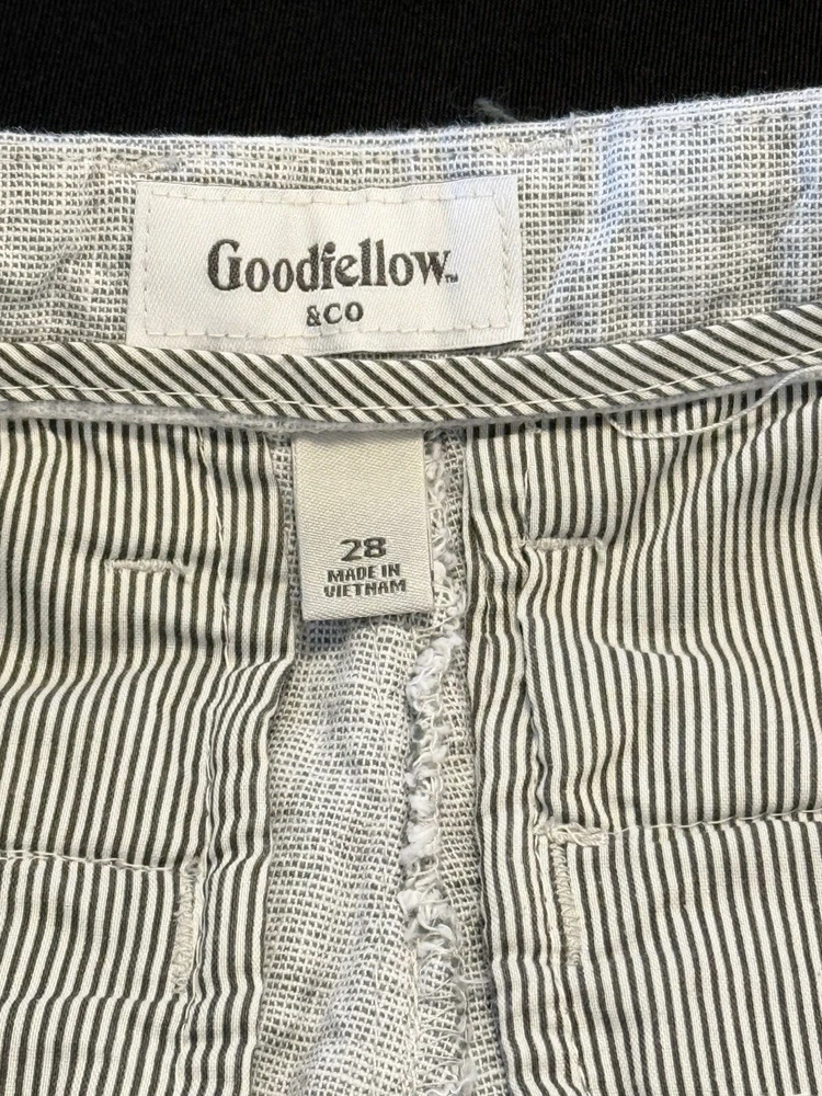 Mens Sz 28, Light Grey & White Shorts By Goodfellow & Co with a 7" inseam. *Pre-Owned, Slightly loved with minimal wear. No Rips, Tears, Stains or Pulls. Wrinkles are an added Bonus Photos are of actual item that ships. Please inspect the photos carefully Smoke Free, Cat Free Home If you have additional Questions feel free to reach out.