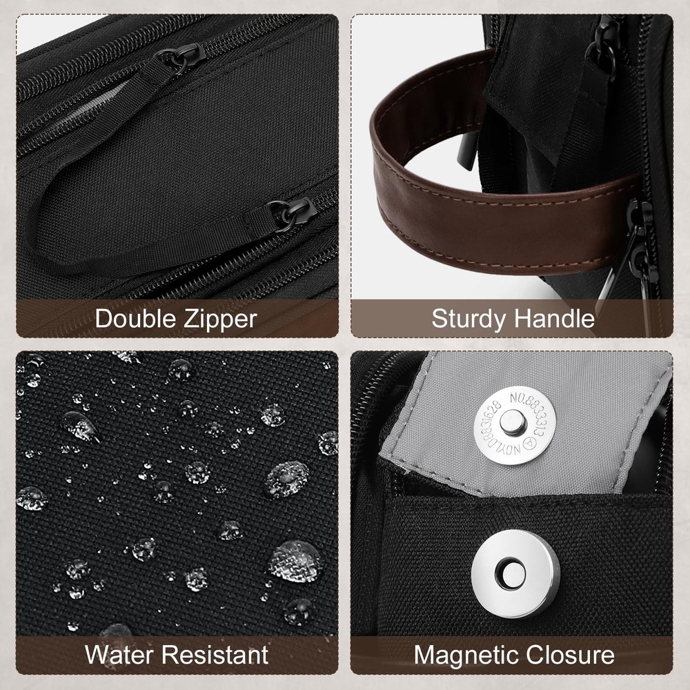 Wedama Toiletry Bag for Men, Medium Hanging Travel Toiletry Bag, Extra Electronic Organizer Bag Waterproof Travel Bag for Toiletries with PU Handle for Travel Business Trips Swim Camping, Black&Brown Extra Electronic Organizer: Wedama toiletry bag for men is designed with electronic cable organizer compartment. The multiple mesh pockets and elastic loops are great for taking your cords, cables, USB drive, cellphone, charger, mouse, flash drive, and other accessories, which also protect your electronics accessories. Saying goodbye for messy cords, making your life happier. Large Capacity: 9.5 x 4.8 x 6 inches. You can quickly put all the toiletries, hair wax, shower gel, shampoo, toothbrushes, razors, shaving cream, facial cleanser, general medicine and charging cords in the toiletry bag. The PU leather handle design is convenient for carrying and hanging. Suitable for men to use when traveling business and on trips. Neat and Organized: The travel toiletry bag is designed with double zippers, allowing for an easy access to inner contents. The main compartment with a firmly magnetic buckle, increasing the closure of the toiletries bag. The 3 compartments with elastic straps can be hold bottles of various shapes and keep items upright, also putting cords and other items, keeping all your items organized. High Quality Material: The surface of the men's travel toiletry bag is made of 600D Oxford cloth and PU, which is waterproof and dirt-proof. The stitching is woven with high-density double-needle thread to make the toiletry bag more sturdy and solid, increasing its durability. The bag interior is made of polyester, which is waterproof and easy to clean, even in the bathroom. There is no need to worry about getting wet or getting water in. Travel Essentials: This portable travel toiletry bag is perfect for business trips, travel, gym, camping, and family outings. The design of Wedama toiletry bag is joined PU leather and embellished with metal elements, which makes it classic and stylish. Great gift choice for friends, boyfriends, and family for various occasions like birthdays, Father's Day, Christmas Day, and Valentine's Day. Wedama Toiletry Bag for Men, Hanging Travel Toiletry Bag, Extra Electronic Organizer Bag Waterproof Travel Bag for Toiletries, PU Handle Travel Dopp Kit for Travel Business Trips Swim Camping SHIPPING Domestic Buyers - We have confidence in our products, but if you are not fully satisfied please contact us within 30 days of purchase and you will get full refund. - We ship within 3 business days of payment, usually sooner - We offer FREE shipping on all orders! - We only ship to the lower 48 states, no APO/FPO addresses or PO Boxes allowed International buyers – please note: Import duties, taxes, and charges aren't included in the item price or postage cost. These charges are the buyer's responsibility. - Please check with your country's customs office to determine what these additional costs will be prior to bidding or buying. * Order Cancellation Policy ** You can return a product for up to 30 days from the date you purchased it. 1. The seller reserves the right to cancel the special case only due to eBay cancellation fee. 2. The decision of seller is the final. 3. The seller will respond to the cancellation request within 2 business days. Please wait for the result of cancellation. 4. In case the cancellation is not completed by some reasons, the buyer can follow the options below to get the refund. 4.1 The buyer can reject the item when it arrives. 4.2 The buyer can send the item back to the seller within 30 days If the buyer receives item (USA Shipment ONLY). The seller will provide the FREE return label to the buyer when the buyer opens " Return Item" case on eBay by using the reason as "Change my mind" ONLY. 5. When buyer has placed the order. The order will be processed and completed by automatic warehouse system within 5 minutes. In case that buyer sends the cancellation request after 5 minutes of placing the order, the request will be rejected. **Sending direct message to cancel the order is not allowed for every case.* Return Policy For the return case - If buyer would like to return the items for refund or replacement, please CONTACT SELLER to receive the free return label from seller. The refund or replacement will be processed with the tracking number of return label which is provided by seller only. The other ways of return which are not approved by seller will not be processed for the refund or replacement.