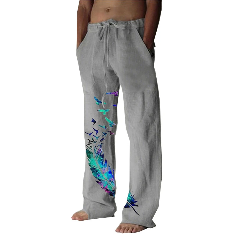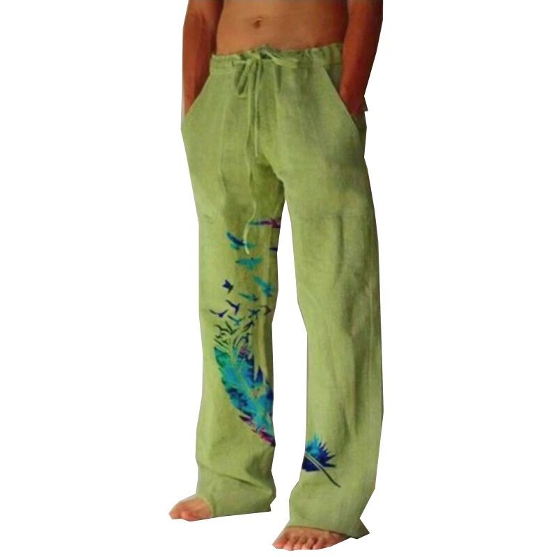 Specifications: 100% Brand new and high quality. Size:M,L,XL,XXL,3XL Color: white,khaki,grey,green Material: Polyester Pant length:full length Waist Type: Mid Pattern:Feather Printed Season:spring,summer Note: 1.Due to the light and screen difference, the item's color may be slightly different from the pictures. Please understand. 2.Please allow 2-3% error due to manual measurement.Please make sure you don’t mind before you mid. 3.Size doesn’t fit all.Please carefully check size chart and select the size based on your real size. aWash before wear Cold gentle machine wash Do not bleach Do not tumble dry Drip dry Package:1 pcs men pant