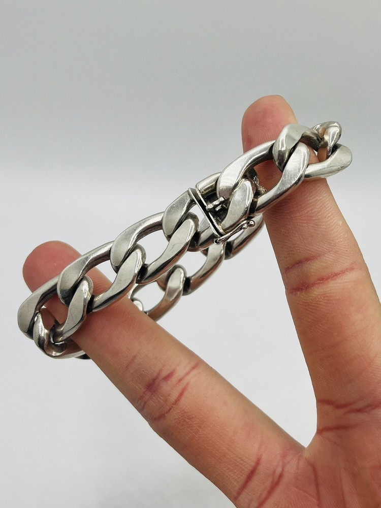 Men's Heavy Cuban Link Bracelet 925 Sterling Silver Heavy 15MM 8 inch Fast shipping. Pre owned. Check out my other items Thank you
