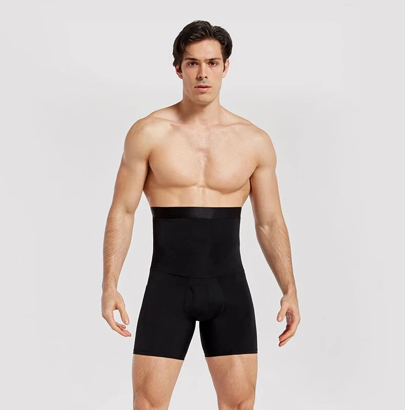 Men's Black High-Waist Leather Pants for Body Shaping & Waist Control