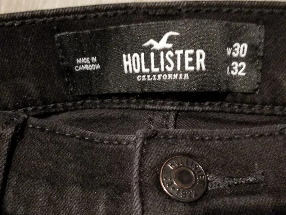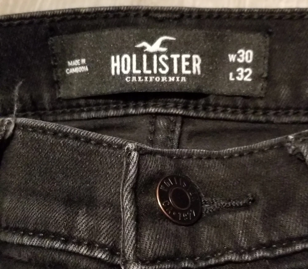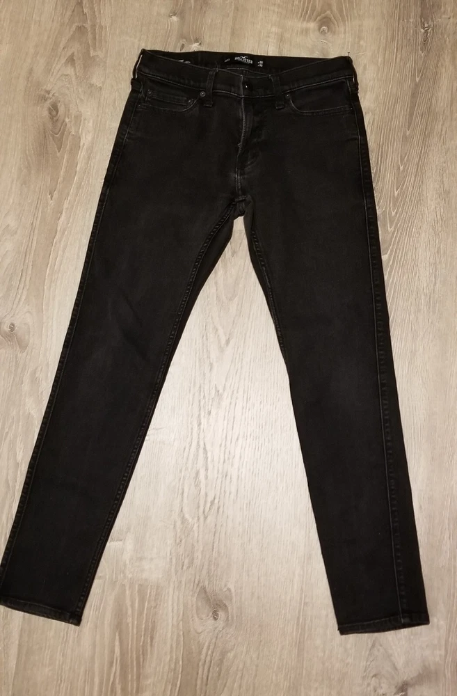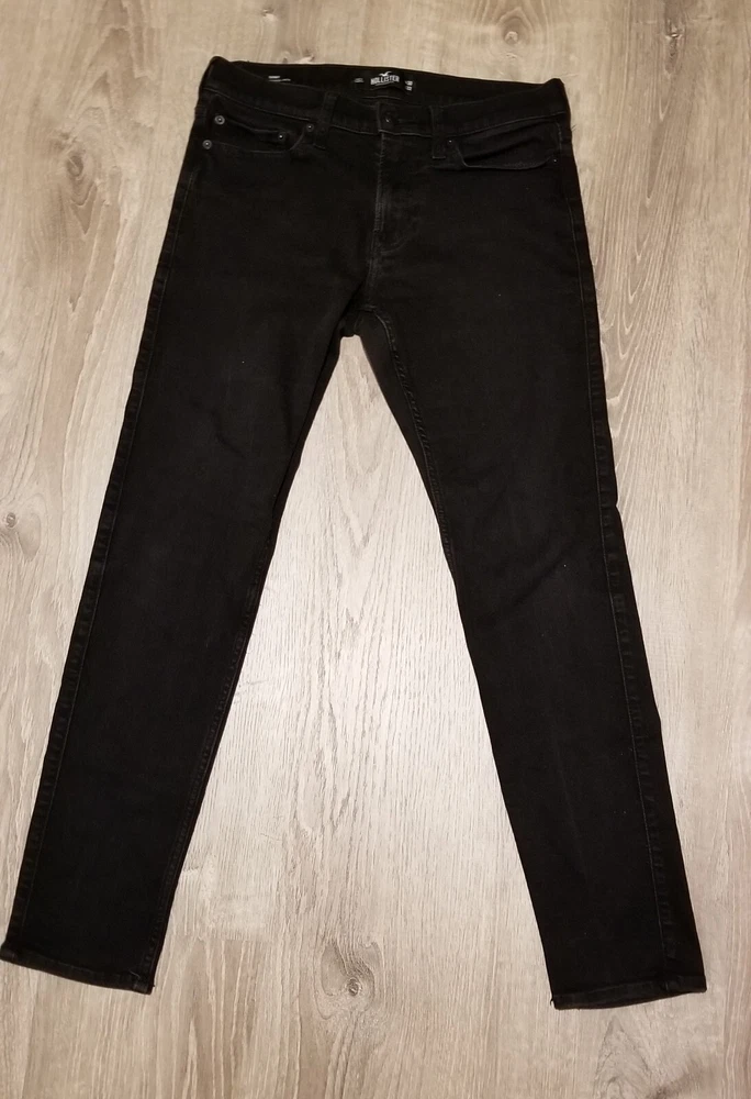 Size Type: Regular Color: Black Style: Skinny Inseam: 32 in Closure: Zip, Button Waist Size: 30 in Department: Men Type: Jeans Brand: Hollister Features: Slimming, Pockets, Stretch Size: 30 Fit: Slim