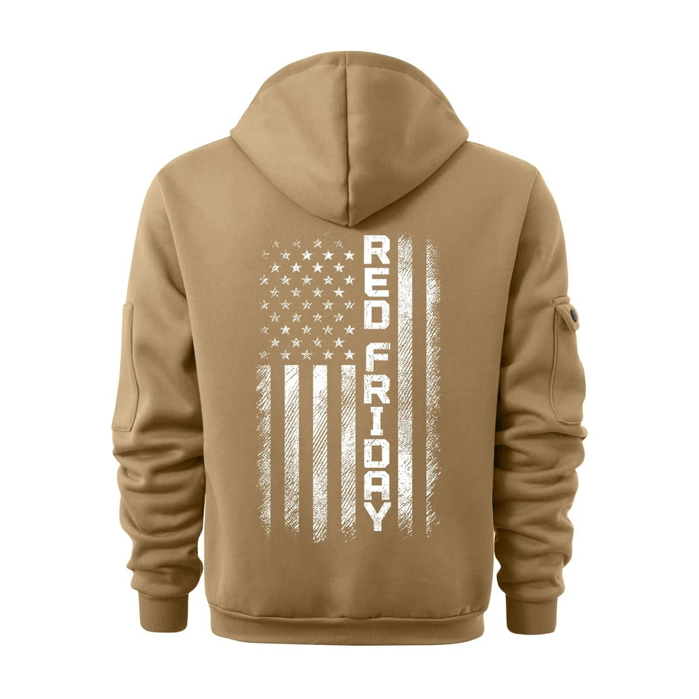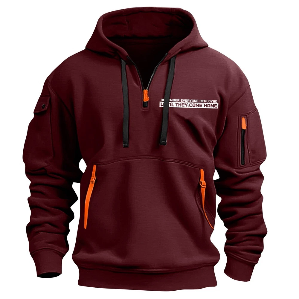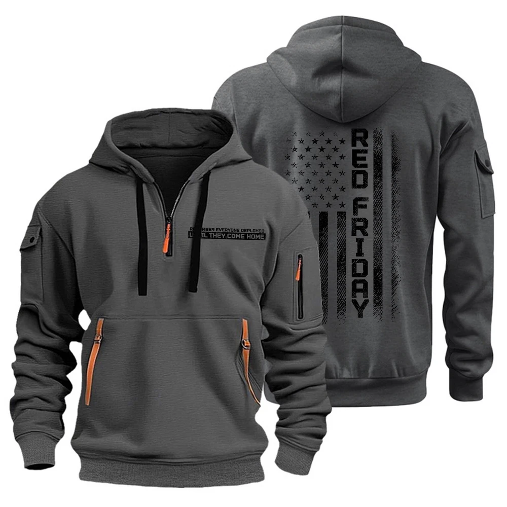 Men's Hoodies 1/4 Zip Up Pullover Flag Tactical Sweatshirt With Arm Pockets