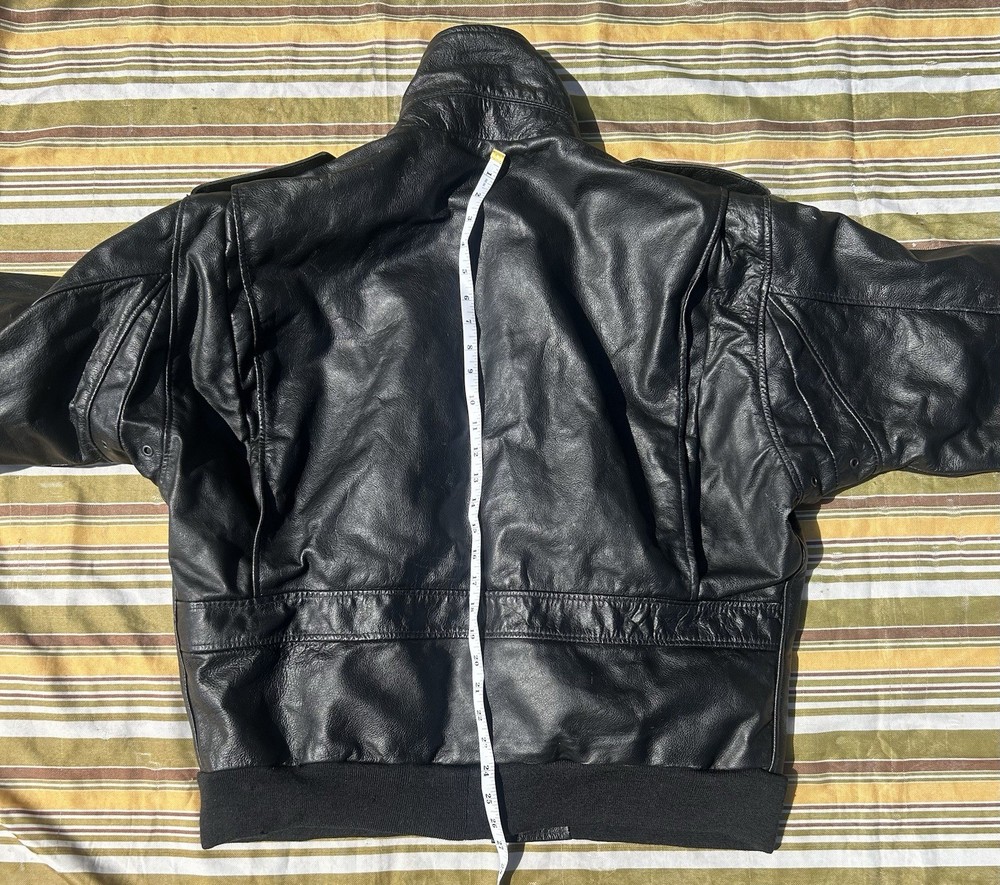 This men's leather bomber jacket in black features a solid pattern, mid-length design, and a zip closure for a casual occasion. With a vintage Easy Rider style, this jacket is perfect for winter, fall, and spring seasons. The regular fit and medium size make it a versatile and comfortable choice for any man looking for a stylish and durable outerwear piece. The jacket also includes accents like a zipper closure and is designed for dry clean only to maintain its quality.