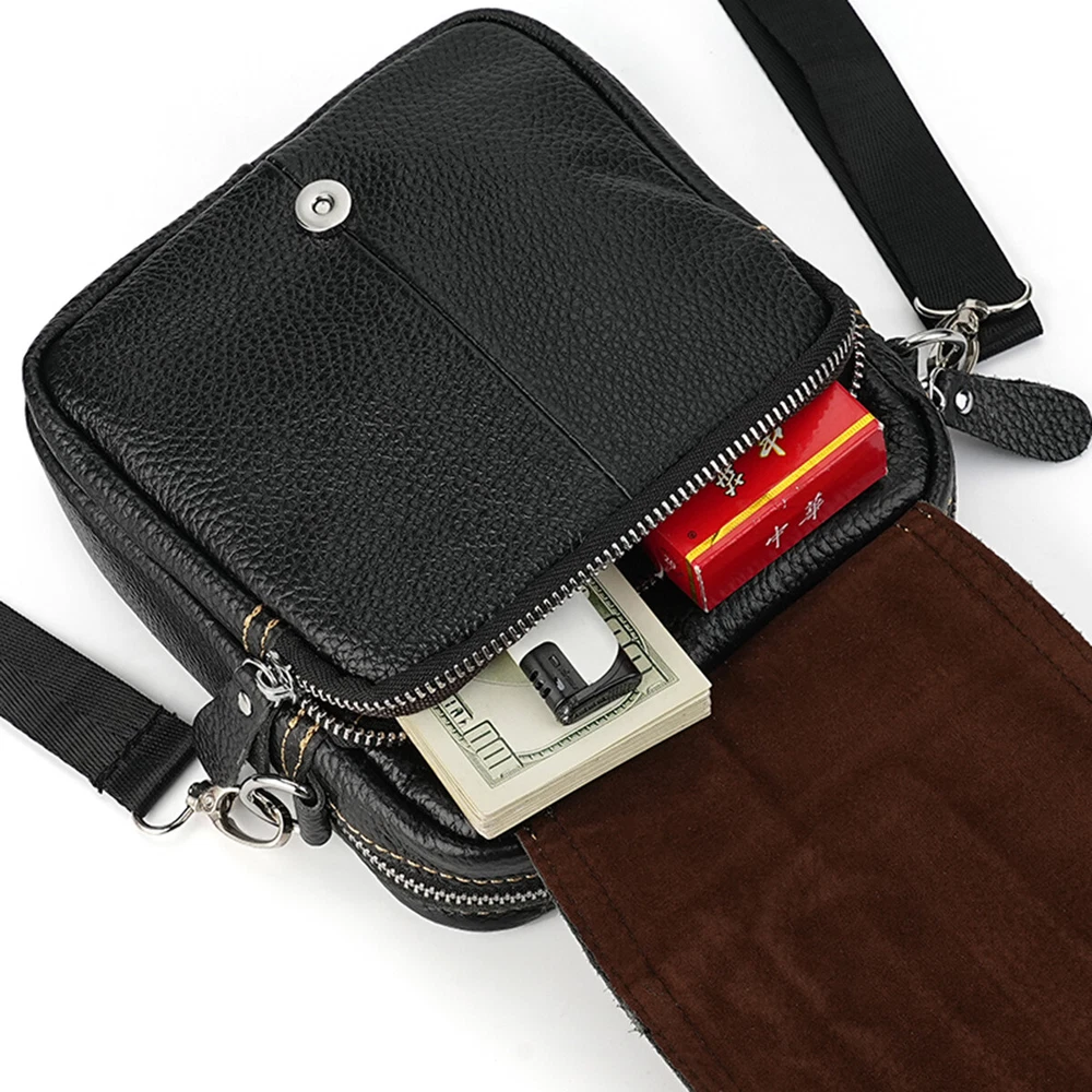 Men's Mini Card Bag Black Leather Bifold Wallet Multi Slot Slim Wallet