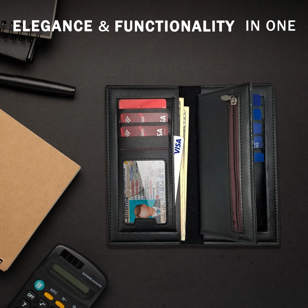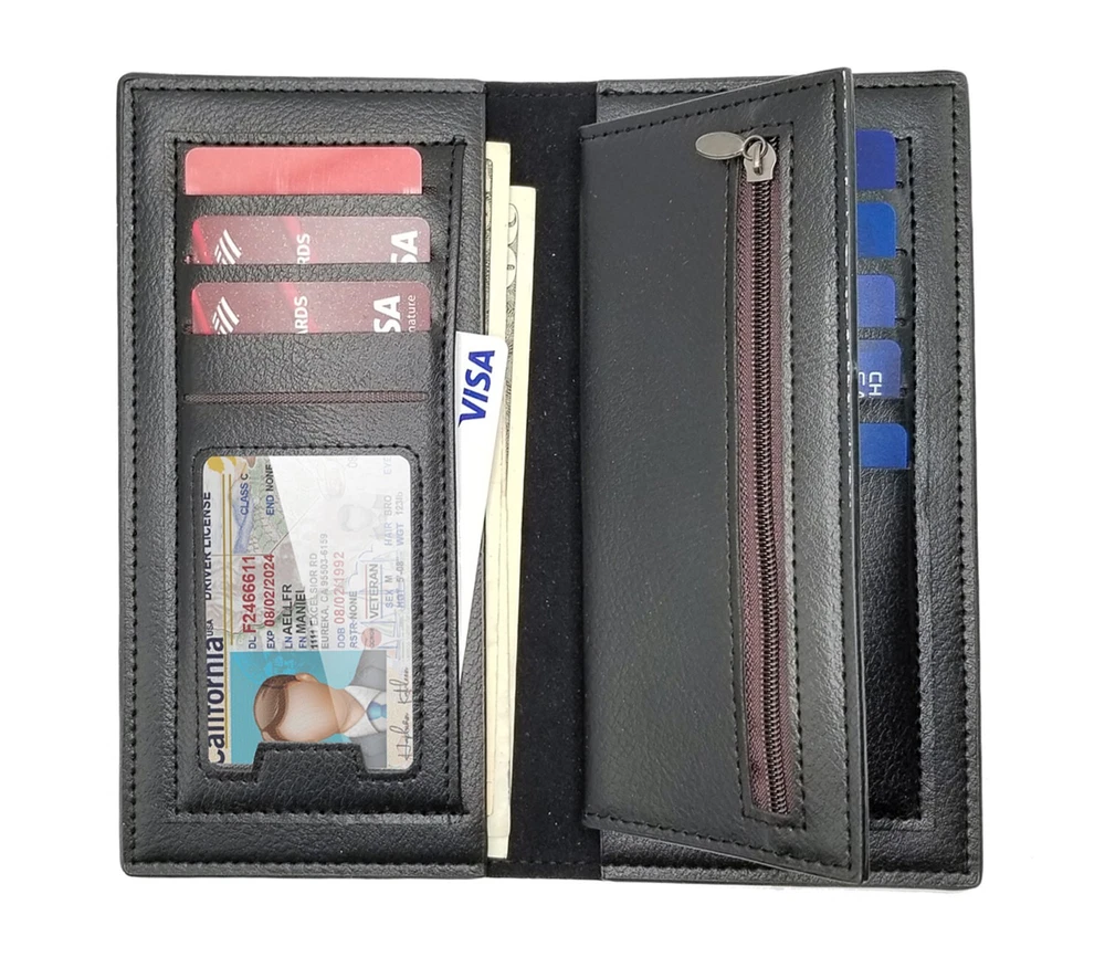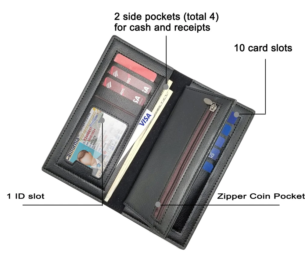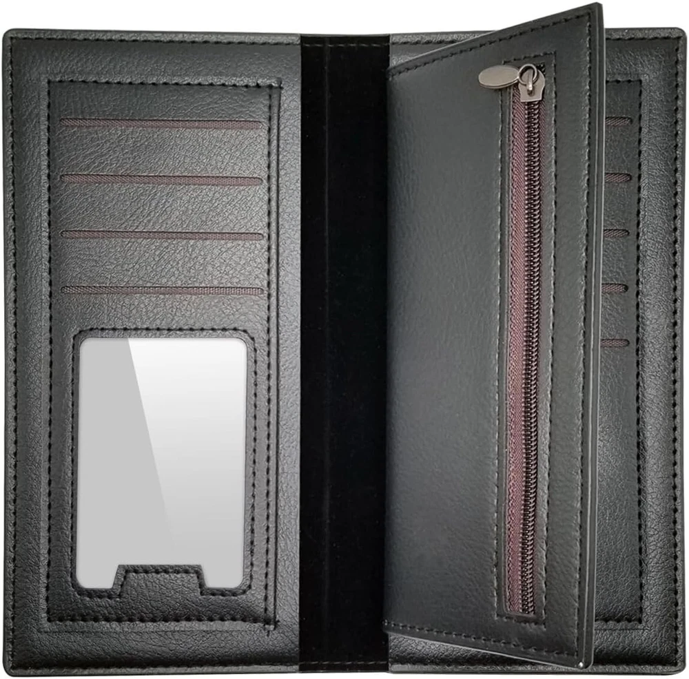 Men's Leather Long Wallet Bifold ID Card Holder Checkbook Clutch Purse Handbag GENUINE LEATHER - Made of high quality genuine leather. LONG WALLET - Fullfill your business need, easy to carry. Elgent and high end design. MULIT FUNCTION - Measuring 7.28" x 3.54" when closed, our slim mens wallets have 10 card slots & 1 ID Windows & Zipper Slot. Plus 4 side pokect for bills to keep you organized. FINEST LEATHER WALLETS FOR MEN - Our long mens wallet is handmade with premium leather and made to last. USA SELLER, FAST SHIPPING