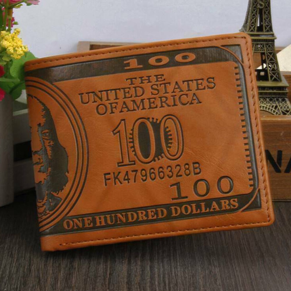Feature: HQ MATERIAL-- High quality PU Leather.Wonderful gift for good friends,boyfriend, husband, father,son and yourself.Especially for teenagers. STRUCTURE--1 Zipper Pouch ,2 Pockets, 4 Credit Card Slots, 2 Photo Window.Ideal for putting ID card, money, coin, etc. UNIQUE SHAPE--Lifelike dollar pattern design, It's been great fun ,fashion appearance and portable. Match with suitable apparel for different occasion. Easy to carry --This wallet is as minimal as your cards themselves. Wallet sits flat in your front pocket. You can also simply put it in bag. Size: package body width 12CM, package height 9.7cm, thickness 1.5CM 85g Measuring method with different relative error of about 0.2cm. Package includes: 1 x mens wallet