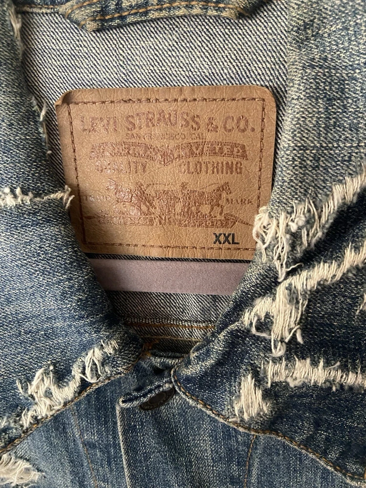 Rare destroyed Levi’s denim jacket; size 2XL! Rare and pre-owned vintage This rare Levi's destroyed denim jacket is a must-have for any fashion-forward man. The jacket features a unique designer style that is sure to turn heads. Made from high-quality denim fabric, this jacket is built to last and will stand the test of time. The blue color is versatile and can be paired with any outfit, making it a great addition to your wardrobe. With a size of 2XL, this jacket is perfect for men who want to make a statement. The jacket is from the Clothing, Shoes & Accessories category and is specifically designed for Men's Clothing. It falls under the Coats, Jackets & Vests subcategory. The jacket is made by Levi's, a trusted brand in the fashion industry. Get your hands on this rare piece today and elevate your style game!