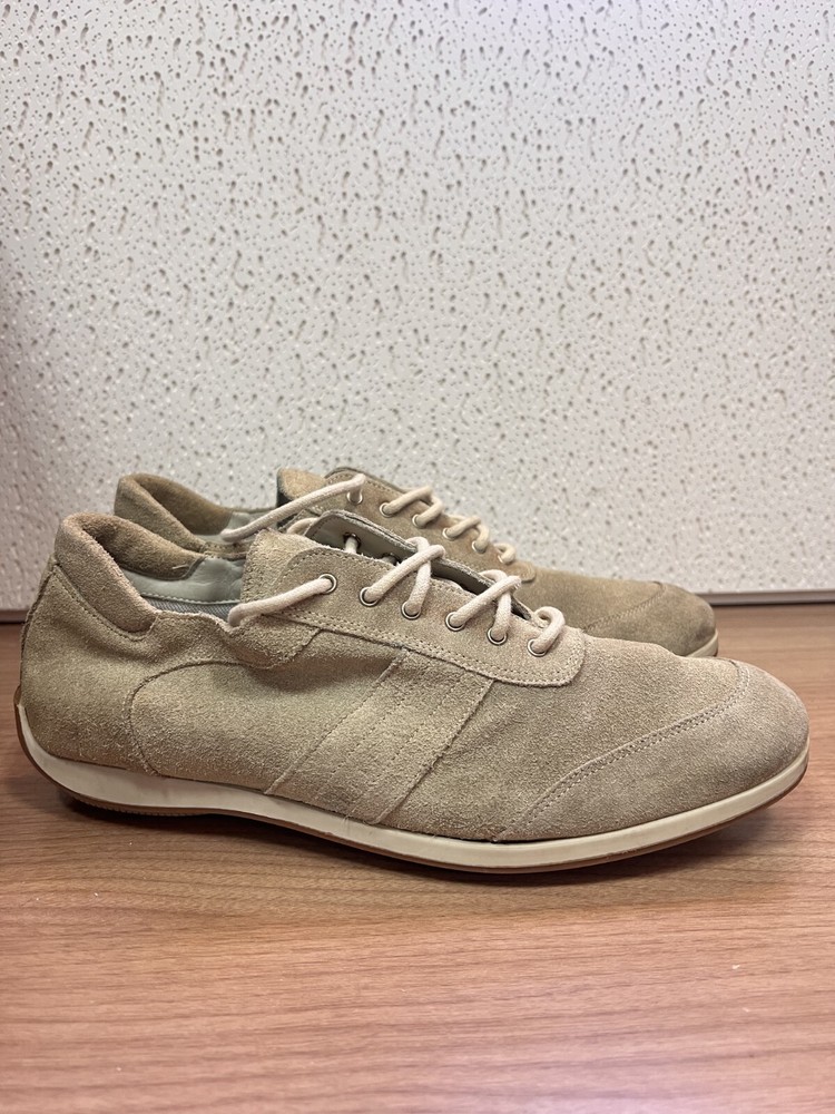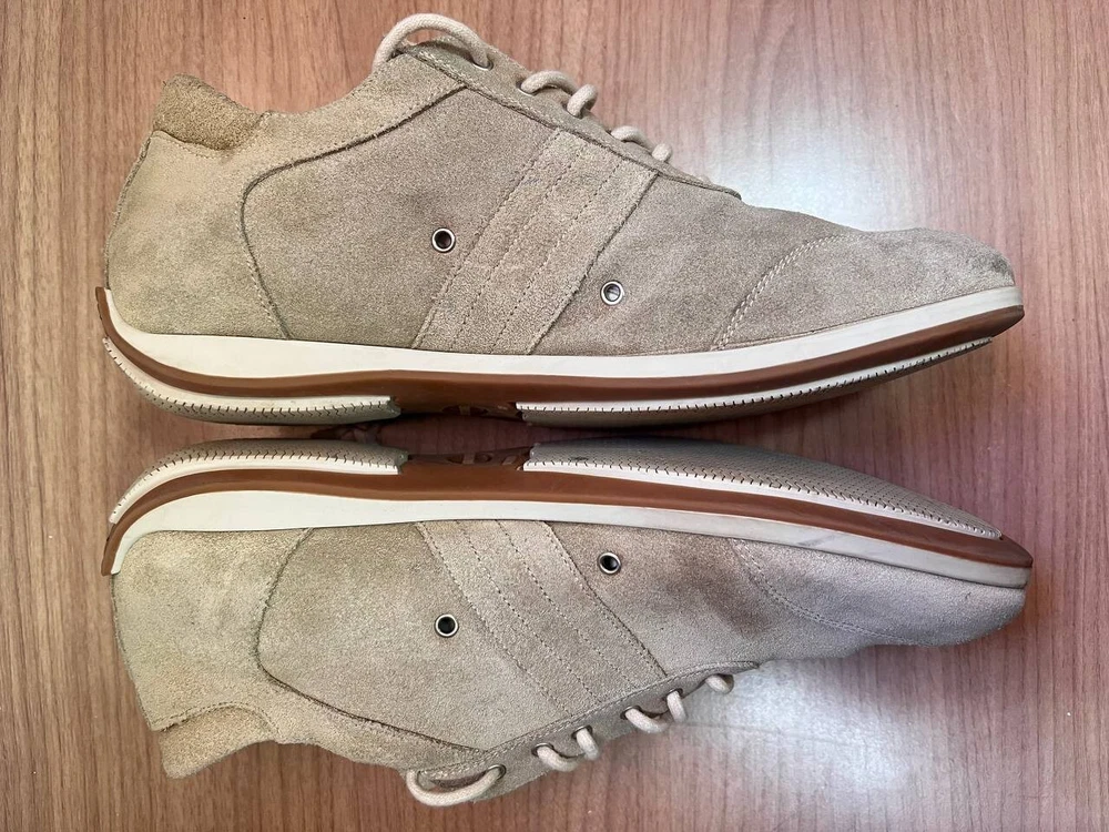 This is a pair of men's Loewe suede leather low top sneakers in a size 42 EU, which is equivalent to a US size 9 and UK size 8. The sneakers feature a stylish polka dot pattern in gray, with a lace-up closure and a comfortable leather lining and insole. Made in Italy, these designer sneakers have a rubber outsole for traction and are suitable for casual occasions and walking activities. The Loewe branding and logo add a touch of luxury to these athletic shoes. As used items, these shoes show signs of wear consistent with their age (stains…) Please refer to the photos for a detailed view of the shoes condition. Advantages of buying used clothes: * Affordability - Enjoy quality clothing at budget-friendly prices. * Unique Style - Discover one-of-a-kind fashion pieces. * Sustainability - Support eco-friendly practices by extending garment lifecycles. * Quality and Durability - Find durable vintage pieces with superior craftsmanship. * Timeless Fashion - Embrace classic styles that stand the test of time. * Rare Finds - Uncover exclusive and discontinued items. * Creativity - Experiment and express your style creatively." **Shipping Policy:** Shipping: We offer [standard shipping ] shipping takes less than two or three weeks. Handling Time: We strive to ship items within [2] business days after receiving cleared payment. International Buyers: Please note that import duties, taxes, and charges are not included in the item price or shipping cost. These charges are the buyer's responsibility. Please check with your country's customs office to determine what these additional costs will be prior to purchasing. **Returns and Exchange Policy:** Returns: We accept returns within [30] days of delivery. The item must be returned in the same condition as received, and the buyer is responsible for return shipping costs. Exchanges: Unfortunately, we do not offer exchanges at this time. **Thank You:** Thank you for your visit ! If you have any further questions or need additional information, please don't hesitate to contact us. We appreciate your interest and hope you enjoy your purchase.