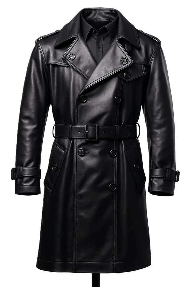 Men’s Long Black Genuine Leather Trench Coat Vintage Double-Breasted Belted Coat Step into timeless style with this Men’s Long Black Genuine Leather Trench Coat , a perfect blend of classic sophistication and rugged masculinity. Crafted from premium genuine leather , this vintage-inspired coat features a double-breasted front , a waist-defining leather belt , and a long, sleek silhouette that offers both warmth and high fashion appeal. Whether you're channeling old-school detective vibes or making a bold streetwear statement, this trench coat is designed to elevate your outerwear collection with unmatched edge and elegance. Product Specifications: Material: 100% Genuine Leather – durable, breathable, and long-lasting Style: Vintage trench coat with modern tailoring Closure: Double-breasted button front for classic sophistication Fit: Longline design for full-length coverage and sleek profile Belted Waist: Adjustable leather belt to cinch and define your look Collar: Wide lapel collar that can be turned up for extra flair or wind protection Pockets: Multiple front pockets for practical storage and style Lining: Soft inner lining for comfort and insulation Color: Deep black for versatile and bold styling Occasion: Ideal for casual wear, formal events, cosplay, or winter layering Size Option: Available in various sizes for the perfect fit. Check the size chart for accurate measurements. Customize size is also available. Shipping Policy: Worldwide shipping via DHL, FEDEX, UPS within 3-4 business days; $35 extra for remote areas. Delivery in 5-7 business days, with customers responsible for customs fees. Return Policy: 30-day returns accepted; customer covers return shipping. Full refund for items returned in original condition. Customer satisfaction guaranteed.