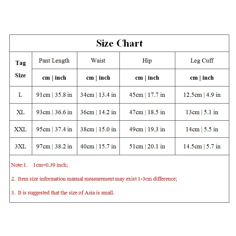 Specifications: 100% Brand new and high quality. Size:L,XL,XXL,3XL Style:Thin,Fleece lined Color: Black,grey,light Material: Cotton+Polyester+Spandex Pant length:full length Waist Type: Mid Pattern:solid color Season:spring,autumn,winter Note: 1.Due to the light and screen difference, the item's color may be slightly different from the pictures. Please understand. 2.Please allow 2-3% error due to manual measurement.Please make sure you don’t mind before you mid. 3.Size doesn’t fit all.Please carefully check size chart and select the size based on your real size. Wash before wear Cold gentle machine wash Do not bleach Do not tumble dry Drip dry Package:1 pcs Men Bottom Pant