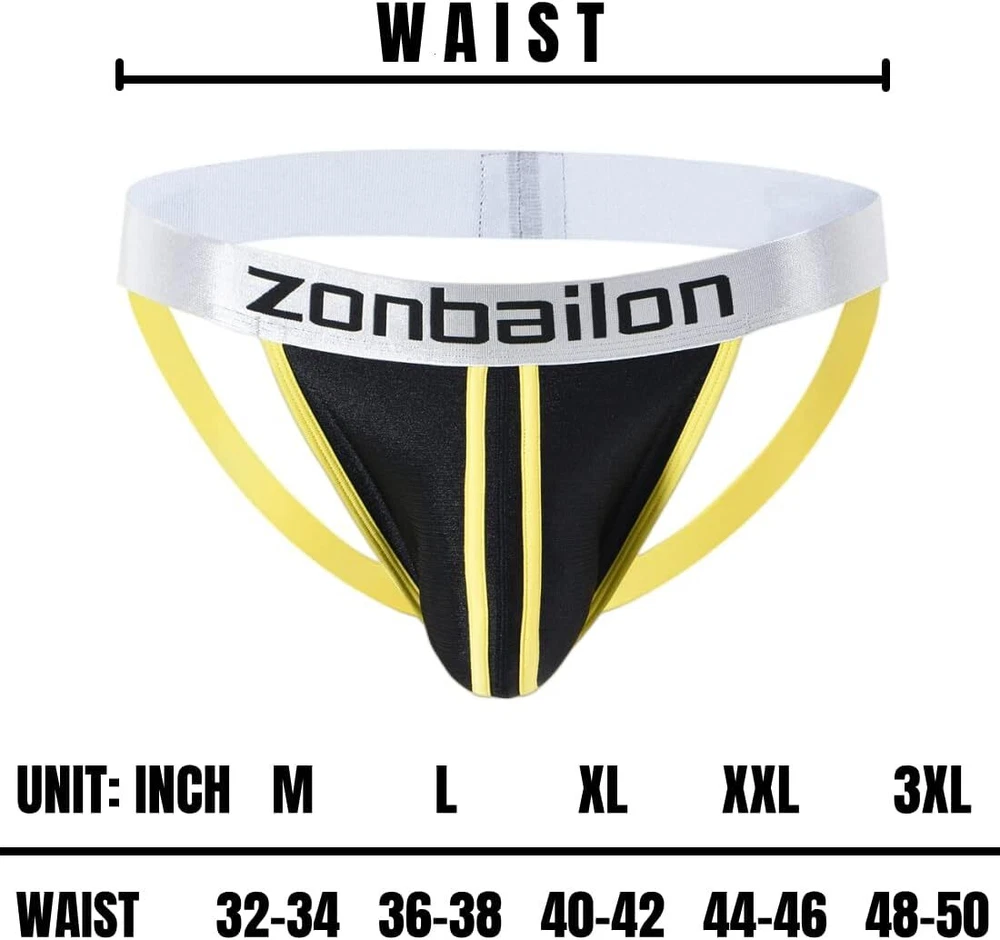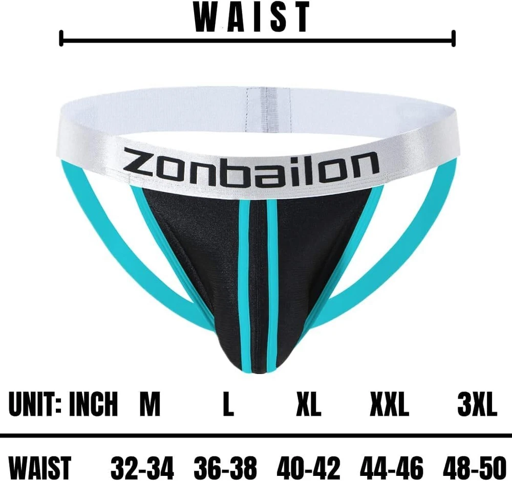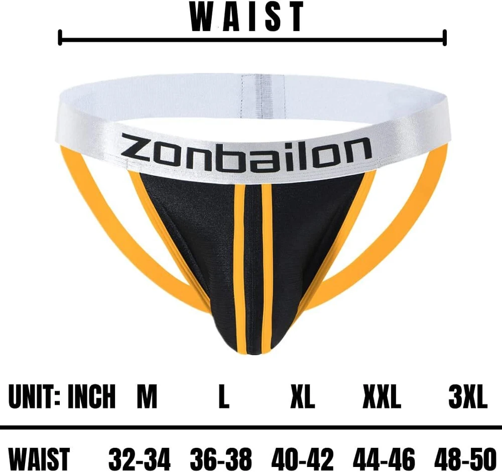 Soft Ice Silk Material: 85% Nylon, 15% Spandex. Thin soft, breathable moisture absorption, anti-wrinkles. Free stretch and close to the skin. Keep skin away from muggy and refreshing all day. Bulge Enhancing Pouch: 3D solid U-convex cutting perfectly fitted for the male characteristic, make your package look bigger and your partner will like the look. Plenty of room for boys, good pouch support, more free space. Pouch holds everything up and in place without crushing, the pouch is roomy and super sexy, put it on display nicely for the Mrs. Durable Waistband: 1.38 inch widened high elastic waistband for a snug fit and elastic persistent, jockstraps comfort to human body. For conforming to male body, even if there is a beer belly. Waistband and seams are durable and comfortable, so you don't experience scratching or pulling. American Size: Medium = 32"-34", Large = 36"-38", X-Large = 40"-42", XX-Large = 44"-46",. Tagless Anti-irritation, reduce the discomfort caused by the friction between the label and the skin and refuse to itch. Wash Care: Recommend both machine wash and hand wash men jockstraps underwear. Not advised to bleach and dry clean jock thong brief, jockstraps are suit for men male boys youth gay to wear. Occasion: Men's jockstrap are without visible lines, ideal for Formal Suit, Sports Fitness and Gym Workout, Bike Cycling and Performing other strenuous activities