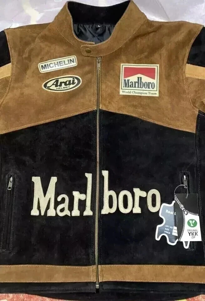 Men's Marlboro Racing Multicolor Motorcycle Biker Genuine Cowhide Leather Jacket Product Description: Turn heads and ride with confidence in the Men’s Marlboro Racing Multicolor Leather Jacket — a bold tribute to classic motorsport culture. Featuring a striking mix of red, white, yellow, and black , this jacket is inspired by vintage racing designs and the iconic Marlboro branding that defined an era of speed and rebellion. Made from high-quality genuine cowhide leather , this jacket is built to withstand the road while offering a stylish, race-ready look. The multicolor panel design , coupled with embroidered and printed racing logos, makes it a standout piece for riders who want to make a strong impression on and off the bike. Features: Constructed from 100% genuine cowhide leather (1.2mm – 1.3mm thick) Iconic Marlboro racing logos and detailing for authentic style Bold multicolor design : red, white, yellow & black for a true racing aesthetic Durable YKK front zipper , zippered cuffs, and waist adjustment straps Polyester inner lining for all-day comfort and breathability Optional removable CE armor padding at shoulders, elbows, and back Functional inner and outer pockets for convenience Suitable for motorcycling, casual wear, or motorsport events Perfect for riders and collectors alike, this jacket delivers a vintage racing vibe with modern craftsmanship. Make every ride a statement.