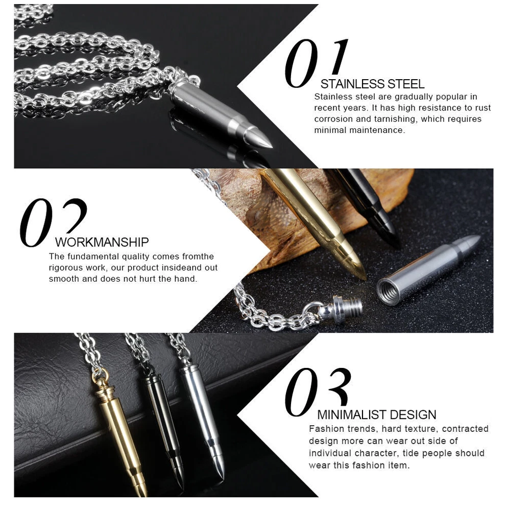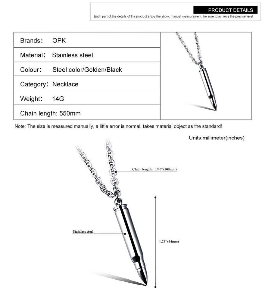 Product Description Condition: 100% brand new Material: Stainless Steel Stone:None Pendant Height: 1.73"(44mm) Chain: 60cm(24 inches) Quantity: 1pcs Color: Silver,Black,Gold