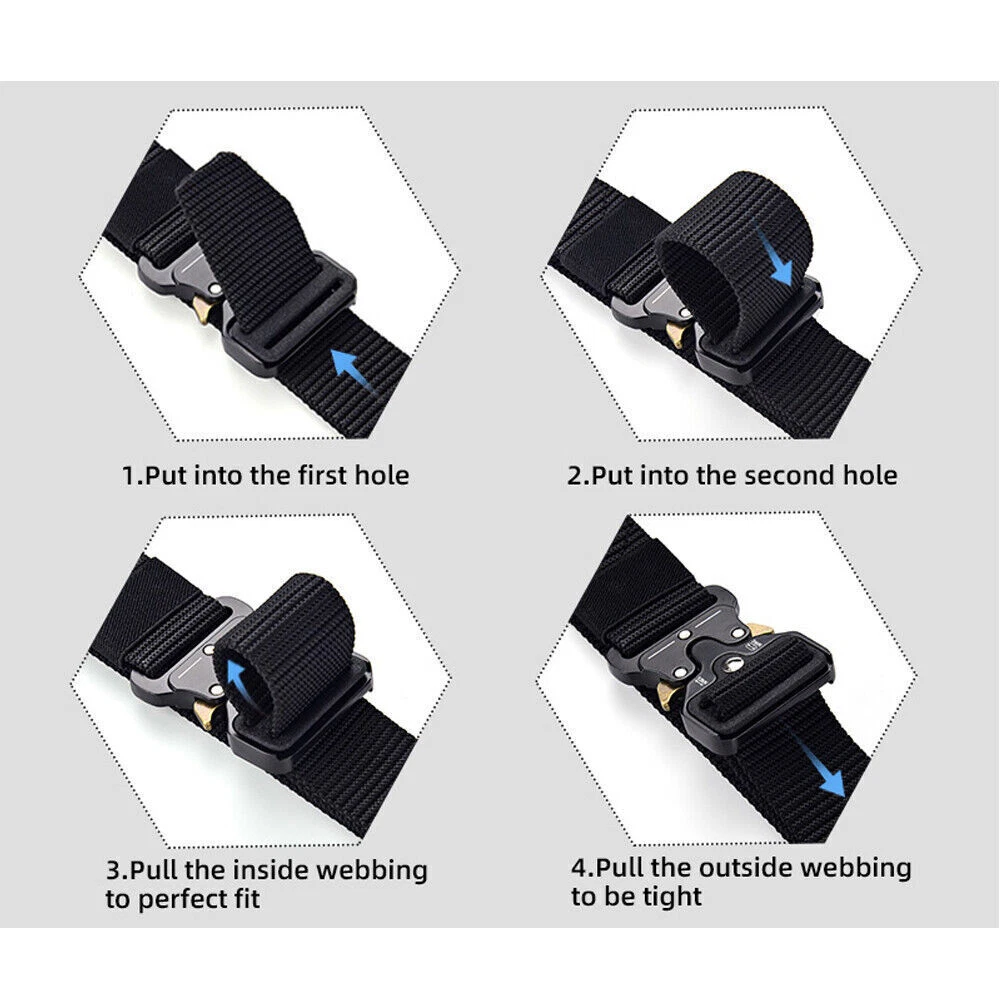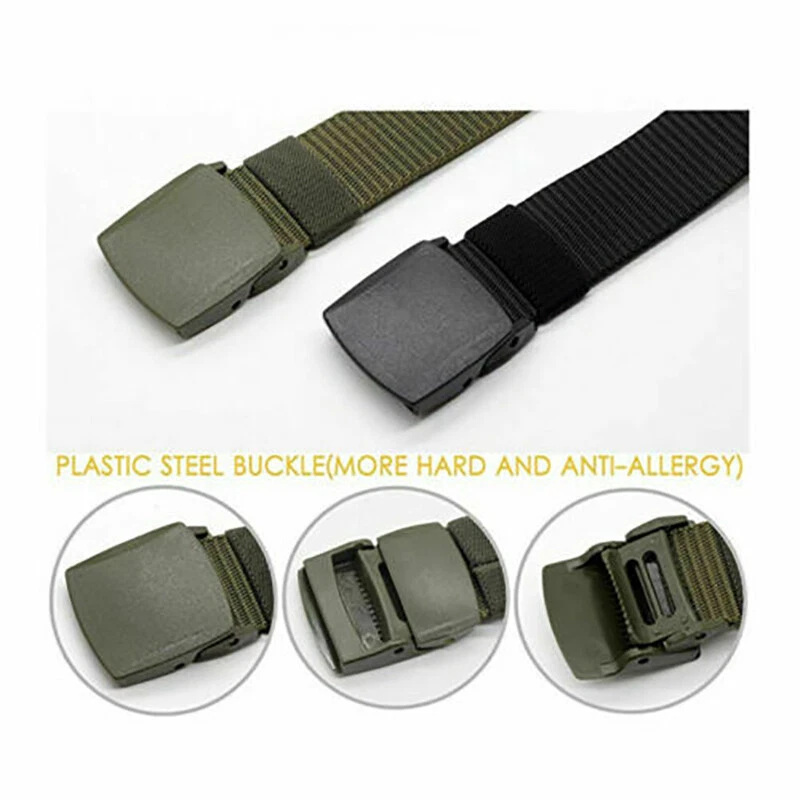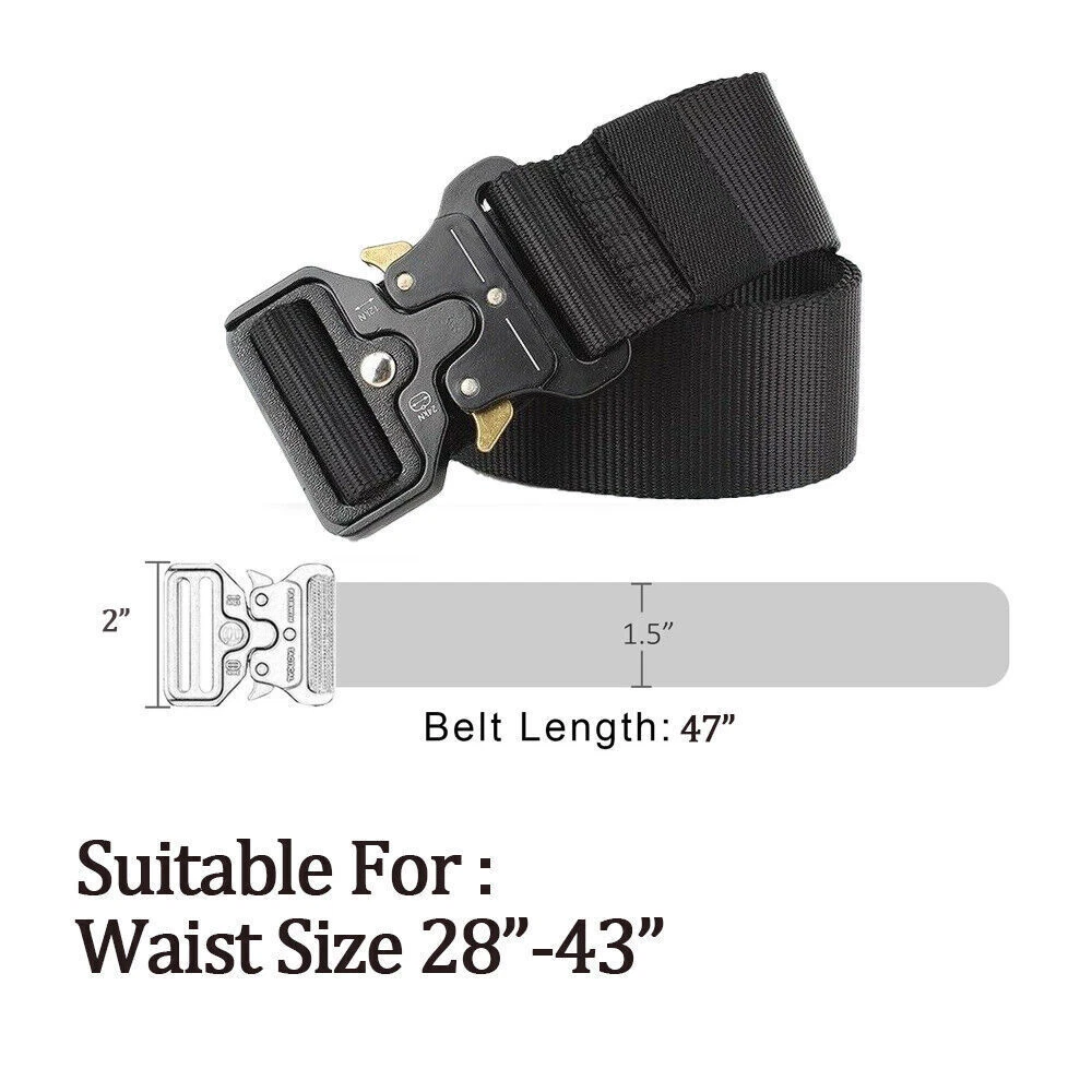 Mens Military Tactical Belts Army Adjustable Quick Release Buckle Waistband Package Included: 1* Plastic DIY Tactical Belt / 1* Alloy Quick Release Adjustable Tactical Belt Style 1: Plastic DIY Type (Black A;Blue A;Green A;Mixed Black) 1. PREMIUM QUALITY NYLON BELT: Premium nylon webbing, lightweight, soft. 2. NON-METAL BELT: Travel-friendly Non-Metal construction, Nickel Free, Non-Allergic. Allow you to go through a metal detector or airport security without taking it off. 3. MILITARY TACTICAL BELT: Strong enough to withstand 500Kg with no deformation. Ideal for police, firefighters, CCW, security guards, electricians and utility workers in need of a great duty belt to carry tools or weapons. 4. ADJUSTABLE WEBBING BELT: 100% Nylon web belt,Width:1.5", Length:48". Holeless design belt and removable buckles allow you to trim the extra length if it is too large for you. 5. NICE GIFT BELT: Great gift for your friend and relatives in Thanksgiving Day, Christmas Day. 6. SIZE: Belt Length: 48" /Belt Width:1.5" Buckle Length: 2"/Buckle Width: 1.8" This belt waist Perfect for Waistline under 45 " Style 2: Alloy Quick Release Adjustable (Black B;Blue B;Green B) 1. PREMIUM QUALITY NYLON BELT: Made by 1000D environmental friendly nylon material, soft and comfortable for daily use. Durable and breathable webbing belt for tactical activities ; No holes allows easy adjustment. 2. HEAVY DUTY METAL BUCKLE: It features a military belt buckle made of heavy-duty metal. 3. QUICK RELEASE: Intuitive and smooth quick release functionality when you push the golden tabs down at the same time. If just one tab is engaged, the connection will hold and fully re-lock on its own. 4. BELT SIZE: Length: 47”, Width:1.5”, fits waist 28"~ 43", Suitable for most people. Note: -Due to manual measurement, there will be an error of +/- 2 mm. -Due to the shooting angle and the display, the goods may have a color difference from the picture. Thank you for your understanding! Guarantee • Fast & Free Shipping on ALL Orders We believe that you should enjoy the benefit of FREE Shipping on all of your orders within the all Continental States. That's why no matter what you buy, we will ship it for FREE, so the price you see is exactly what you pay. No hidden fees or shipping charges. • Most Items Delivered in 2-6 Business Days When you're buying from us, you deserve fast and reliable service. That's why we have a "Same Business Day" processing in place and wide range of shipping options to choose from in order to deliver your package as soon as possible. *2-6 business days time-frame is NOT GUARANTEED and was statistically calculated based on all previous orders. • ALL Orders Placed On Business Days Before 4 PM EST Will Be Shipped Same Day Why wait a day or more for your order to ship? All orders placed before 4 pm EST, Monday-Friday, ship the SAME day. Orders placed on Friday after 4 pm EST, Saturday and Sunday will be shipped the next Monday (if business day). We are closed on all Federal Holidays. • 30 Days Money Back Guaranteed! We will gladly accept your return within 30 days of the original purchase. Please, see below for our full Returns Policy. Shipping Details • Most orders arrive at your door in 2-6 Business Days FOR FREE! • Place your order before 4 pm EST and it will be shipped the same day, Monday – Friday, excluding major holidays. • We will ship your order to your PayPal Verified address provided. • Please verify your address and make sure that it is your current address before making your payment. Any address change requests after your payment CANNOT be guaranteed. • We do not include invoice with our shipments. Feedback • Positive feedback is automatically done once your order is shipped. • We appreciate all our customers to post a Positive Feedback and "Five-Star" scores. • If for any reason you are not satisfied with your purchase. Please contact us via eBay Message and We will do our best to satisfy you! Payment & Order Cancellation • Instant PayPal payment is required. • We also accepts Visa, MasterCard, Discover, and American Express through PayPal guest checkout. • Sales tax is charged for California State orders. • To uphold a shipping speed, your order will be processed almost immediately. If you change your mind after your payment is confirmed, we will do our best to stop the order, however, we CANNOT guarantee the cancellation. Returns • We will gladly accept your return within 30-Days of the original purchase. • Our return process is simple and fast: 1. We will pay for the return shipping label if you received a broken/defective item(s) or the item(s) doesn't match our description. As soon as we receive the item(s) back we will process a refund for the item(s)which was/were returned. 2. You will be required to pay for the return shipping label if you changed your mind or no longer need the item(s). As soon as we receive the item(s) back we will process a refund for the item(s) which was/were returned. • If we'll receive a package back because of the incorrect address, the refund will be processed excluding our shipping cost. Contact Us • Send us a message on eBay and we will answer within 24h on business days.