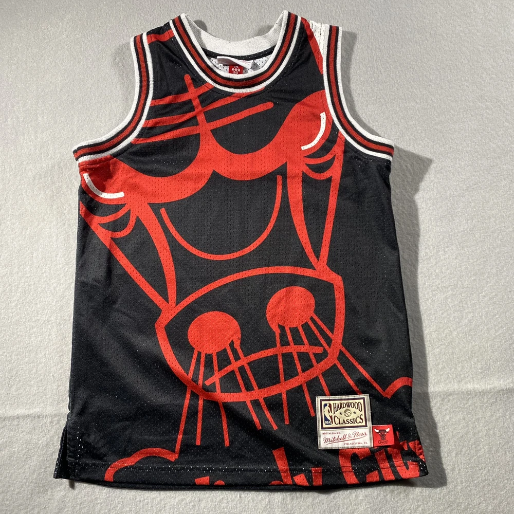 Embrace your hoop spirit with the Mitchell & Ness NBA Big Face Jersey, a must-have for any young fan looking to showcase their allegiance to the Chicago Bulls. This medium-sized jersey, suited for ages 10/12, features the iconic Bulls black and red color scheme, with the team's name proudly displayed on the chest. Crafted for comfort and style, this unisex children's jersey is part of the renowned Mitchell & Ness collection, synonymous with quality and durability. Whether it's for game day or just to celebrate the love of basketball, this jersey brings the excitement of the National Basketball Association right to your child's wardrobe.