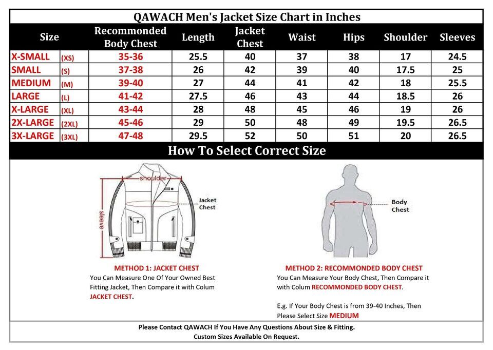 Description:- v The jacket is made from 100% Genuine Soft Lambskin Leather. v Condition:- Brand-New item. High-Quality Craftsmanship & amazing design. v The style is Exactly Same As In The Picture. However, Slight Color Variations May Occur Due to Varying Screen Resolutions. v Once order received we will send you a message to confirm your order size. v We also offer option to customize Zippers & accessories choice like- Gunmetal, Golden, Silver, Black, Antique Brass zippers & buttons. v Friendly Customer Service. Size & Color:- v Please Refer To The Size Chart In The Image Without Fail And Follow The Instructions To Get The Perfect Fit. v If you're not sure about the sizing send us a message with your body measurements we will stitch you jacket accordingly. v We also CUSTOMIZATION service as per your requirement, please contact us. v For COLORS choice please contact us. Shipping:- v FREE Worldwide Shipping. v We ship your order within our handling time. And notify you with tracking details. v We ship the order through DHL or FedEx and sometimes via India Post depending upon location & service availability. v Any import duties will be paid by the buyer. Returns:- Buy with confidence we accept return. we will accept a return for the item within 30 days of receiving the item in original condition as it was sent and we will refund Buyer is responsible for return shipping & handling charges. DON'T FORGET TO SEE OUR MORE ITEMS FROM MY STORE. We also deal in other leather accessories item, please do check them. THANK YOU & Have a nice day!
