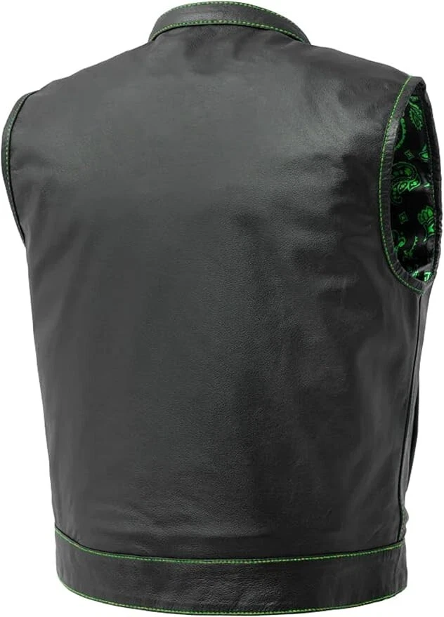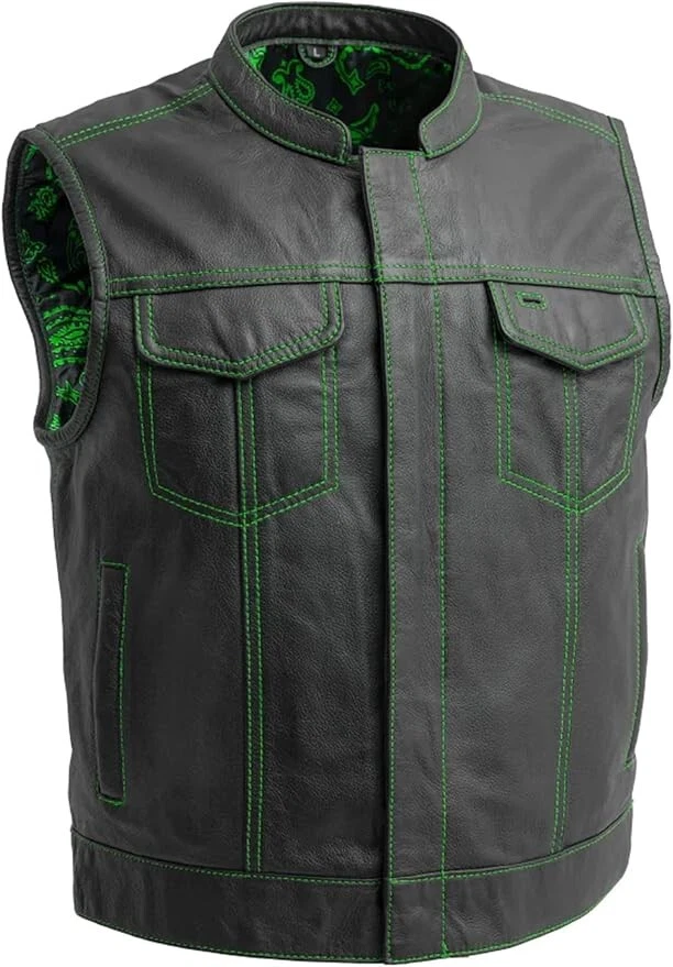 Men's 100% Genuine Leather Vest - Vintage Denim Hunt Club Vest Classic Native American Motorcycles Biker Vest Western Cowboy Vest Waistcoat ⭐⭐ AWESOME FEATURES ⭐⭐ ✓ 100% Genuine leather ✓ Zipper & Button Closure ✓ Sleeveless Design ✓ Front pockets ✓ Side pockets ✓ Concealed gun pockets ✓ Versatile Wear ✓ Occasional Wear ✓ Snap buttons ✓ Along Zipper YKK ✓ Fashion-able Look ✓ Handmade Work ✓ Inside Lining Material: - Polyester ✓ Unique Design ✓ Comfortable & Cool Style ✓ Strong Thread Stitched ✓ Original gift for friends and family ✓ Suitable for Various Occasions ✓ Suitable for all Mens ✓ Inside Lining Material: - Polyester ✓ Regular sizes from XS to 5XL (see chart size) ✓ We do not compromise on quality and comfort. Often Called: cowboy vest for men, motorcycles vest, mens vintage waistcoat, leather waistcoat vests, native american waistcoat vest for men, Hunter vest, Western leather vest, Men leather vest waistcoat, leather rider vest, club hunt vest, Denim style vest, leather lined vest ⭐⭐ Size of Measurements⭐⭐ Please check our size chart carefully for your vest measurements. The size vest of waistcoat is prepared as per standard measurements. choose the right size based on the CHEST and LENGTH. ⭐⭐ Custom Orders⭐⭐ If you have your own design of Western Vest or Waistcoat, please let us know we can manufacture any type of provided western Vest style. ⭐⭐ Shipping Policy⭐⭐ We Offer Fast Shipping Services at Cheap Prices. We ship to your eBay address. Please make sure your eBay address is correct before you pay. Item will be shipped within Handling days when we received payment. Delivery time depends on destination and other factors. · Standard Shipping Takes 7-12 Days · DHL Shipping Takes 5-7 Days ⭐⭐ International Buyer Please Note⭐⭐ Import duties, taxes and charges are not included in the item price or shipping charges. These charges are buyers responsibility. we will try our best to reduce the risk of the custom duties. ⭐⭐ Payment Policy⭐⭐ 1. We accept all eBay Payment Methods 2. All major credit cards are accepted. 3. Payment must be clear within Handling time of product. ⭐⭐ Return Policy⭐⭐ We have 30 Days of Return Policy. If you would like to return or exchange this, please return this in the same condition within 30 days of buy, once it will receive by us, money will be refunded. [Contacting us before opening the request is very appreciated] [Let us know with the defect or discrepancy of Jacket within 7 days of receiving] [Letting us know with the feedback of return/exchange upon return is appreciated]. Thanks.